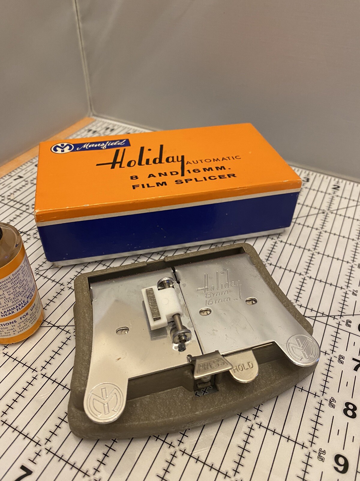 • Vintage Mansfield Holiday Automatic 8 16 MM Film Splicer in box With Fluid USA
