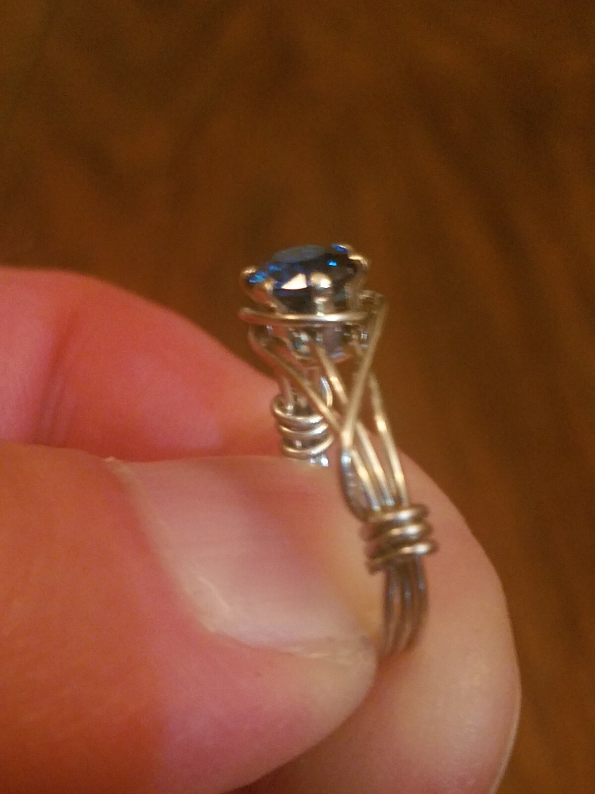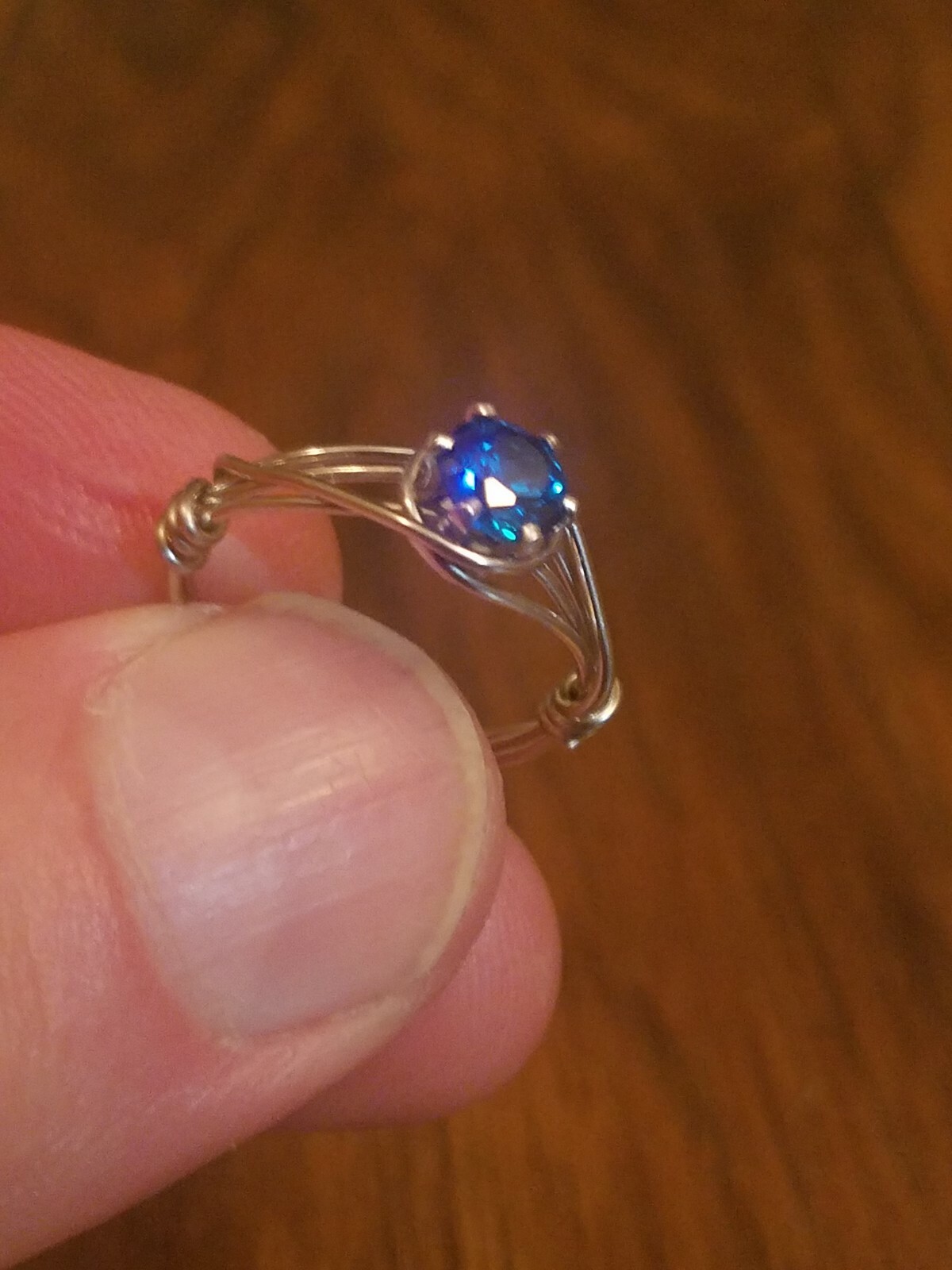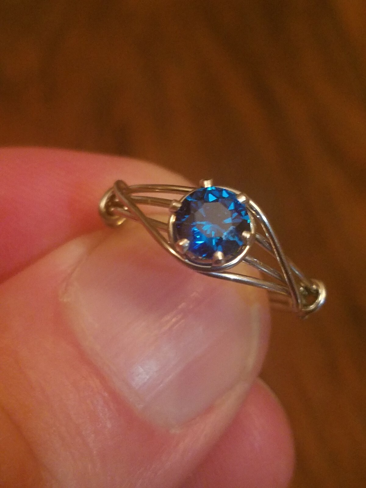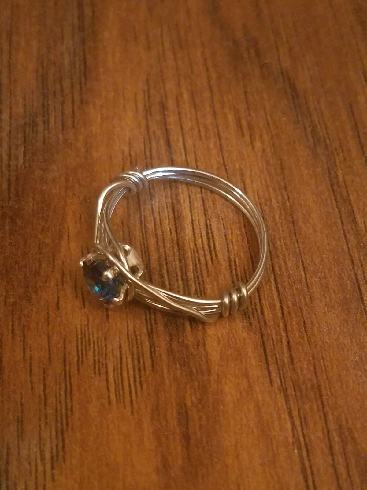 Wire wrapped ring with 6mm swiss blue CZ size 7 art deco style