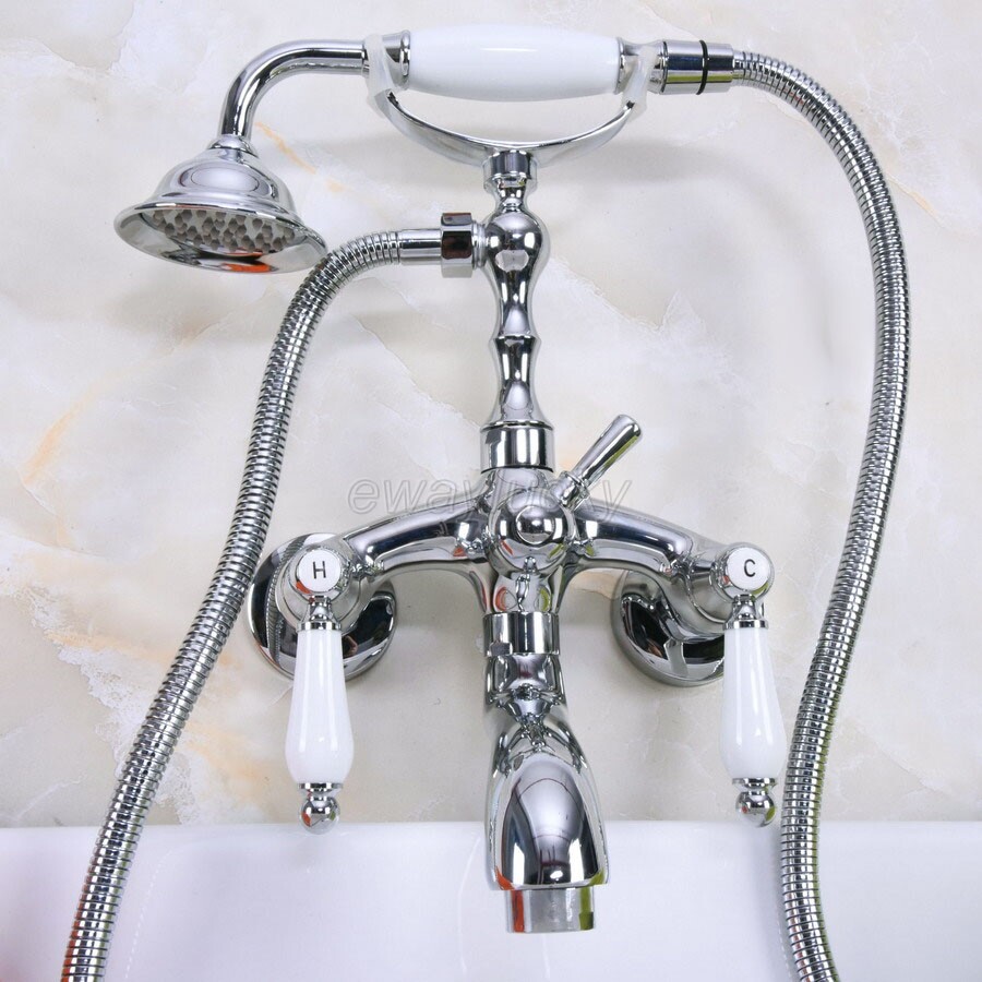 Chrome Brass Wall Mounted Clawfoot Bath Tub Faucet with Hand Shower Spray wna221