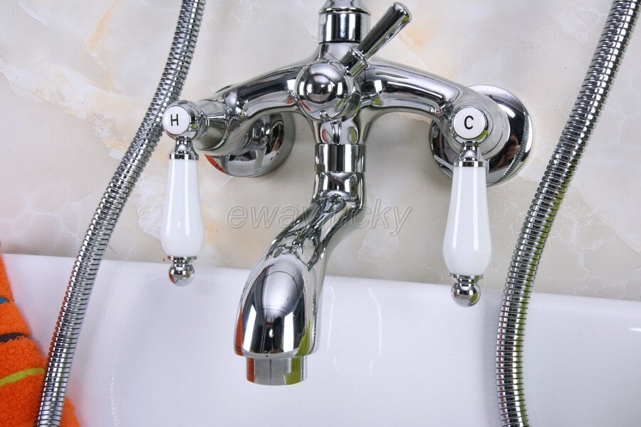 как выглядит Chrome Brass Wall Mounted Clawfoot Bath Tub Faucet with Hand Shower Spray wna221 фото