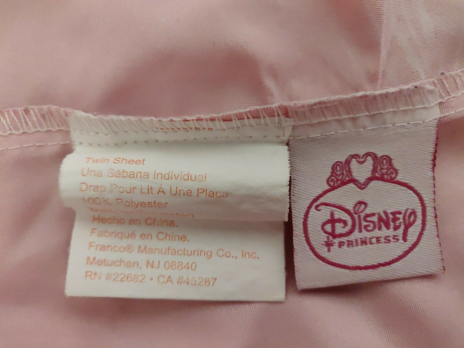 DISNEY Princess Twin FITTED Bed Sheet Floral Pink