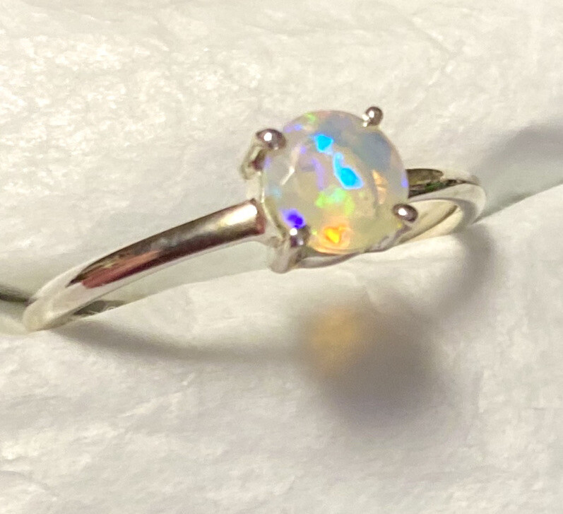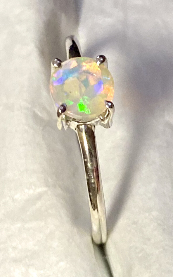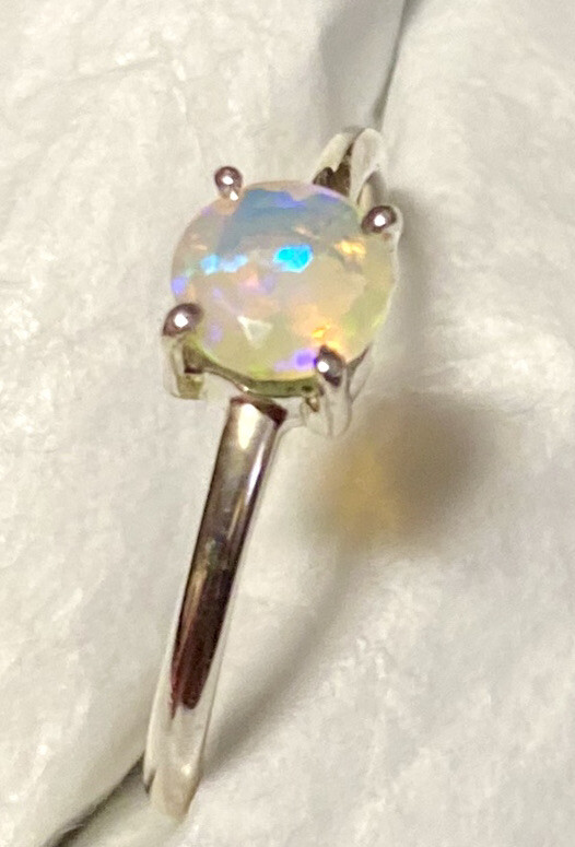 Awsome Faceted Ethiopian Opal Ring 925 Sterling Silver Size 9 Pastel Colors