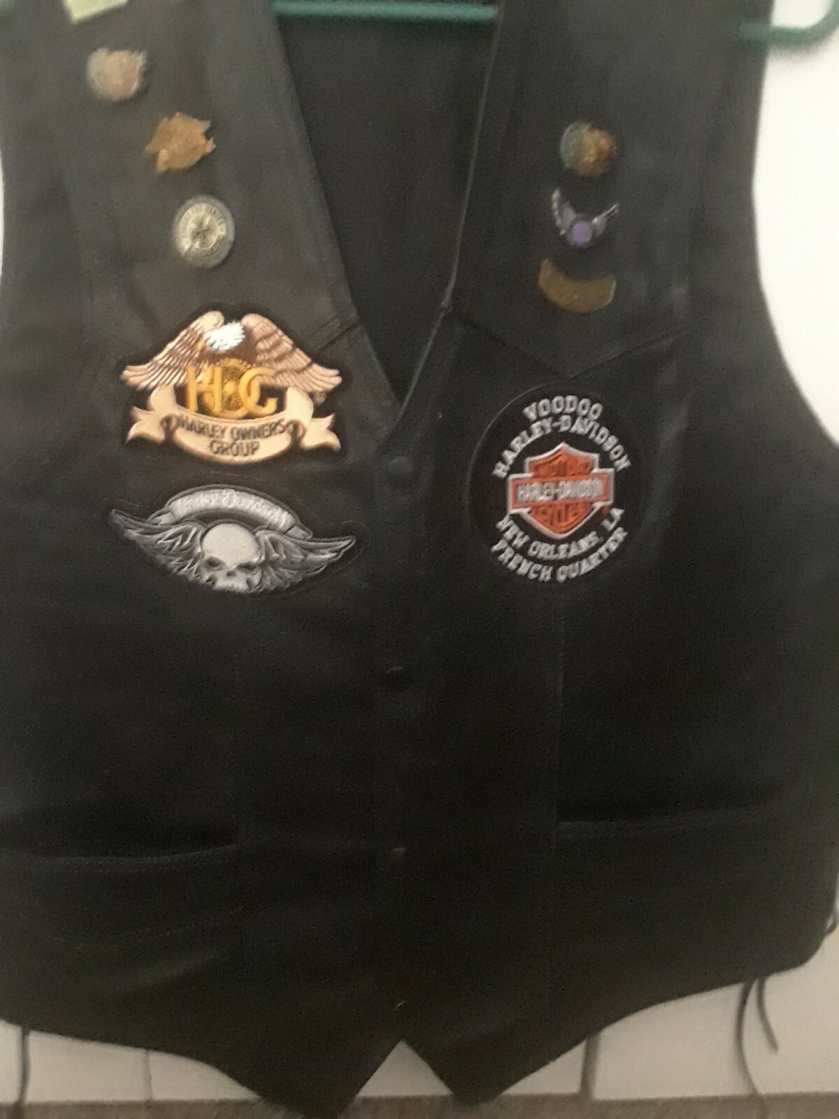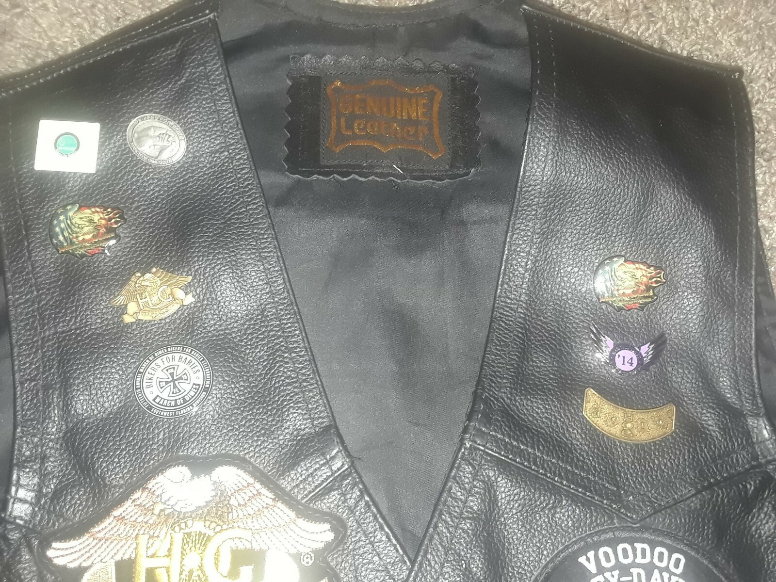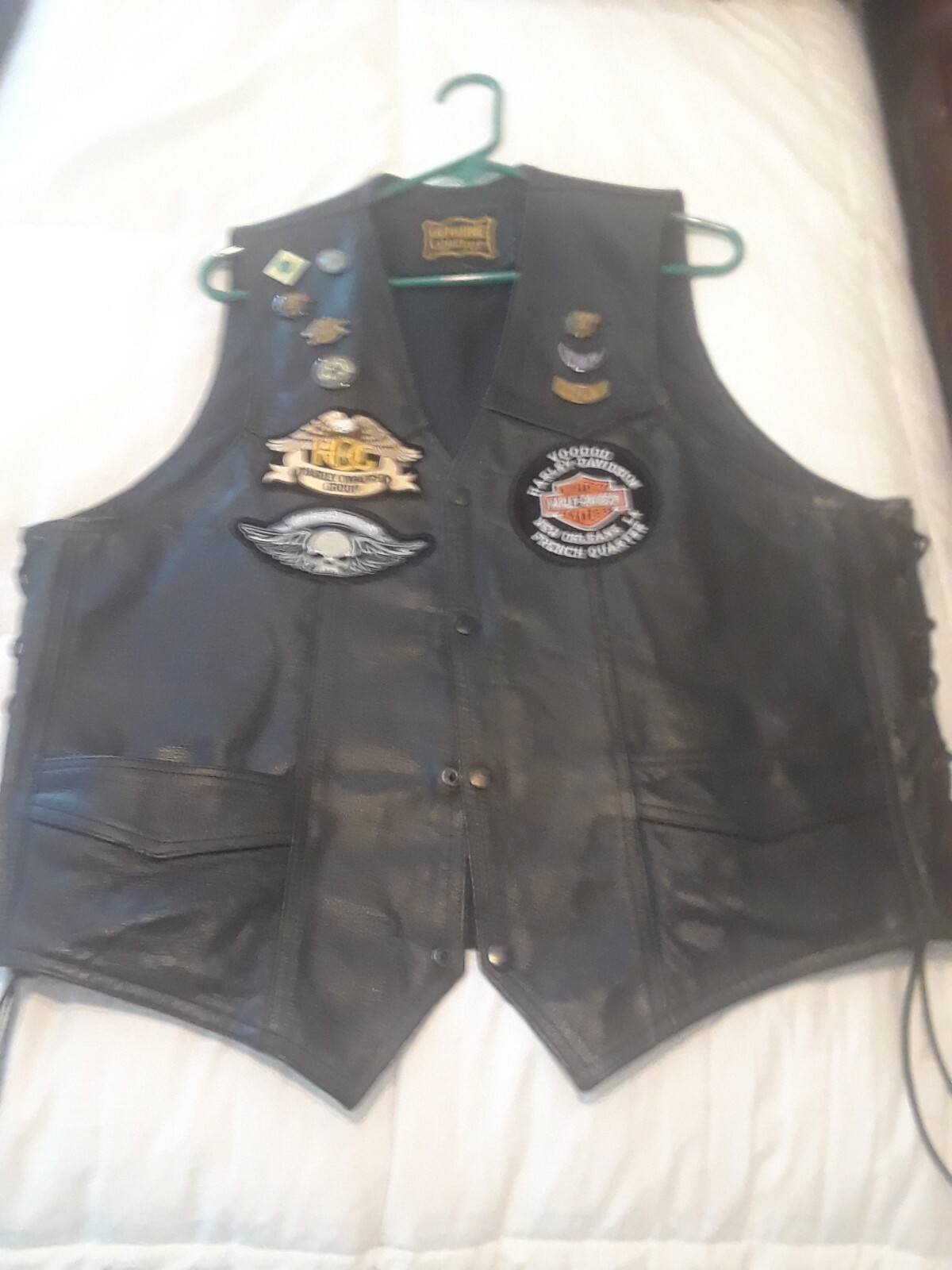 как выглядит Mens Size 44-46 Black Genuine Leather Bikers Vest With 8 Pins Patches фото
