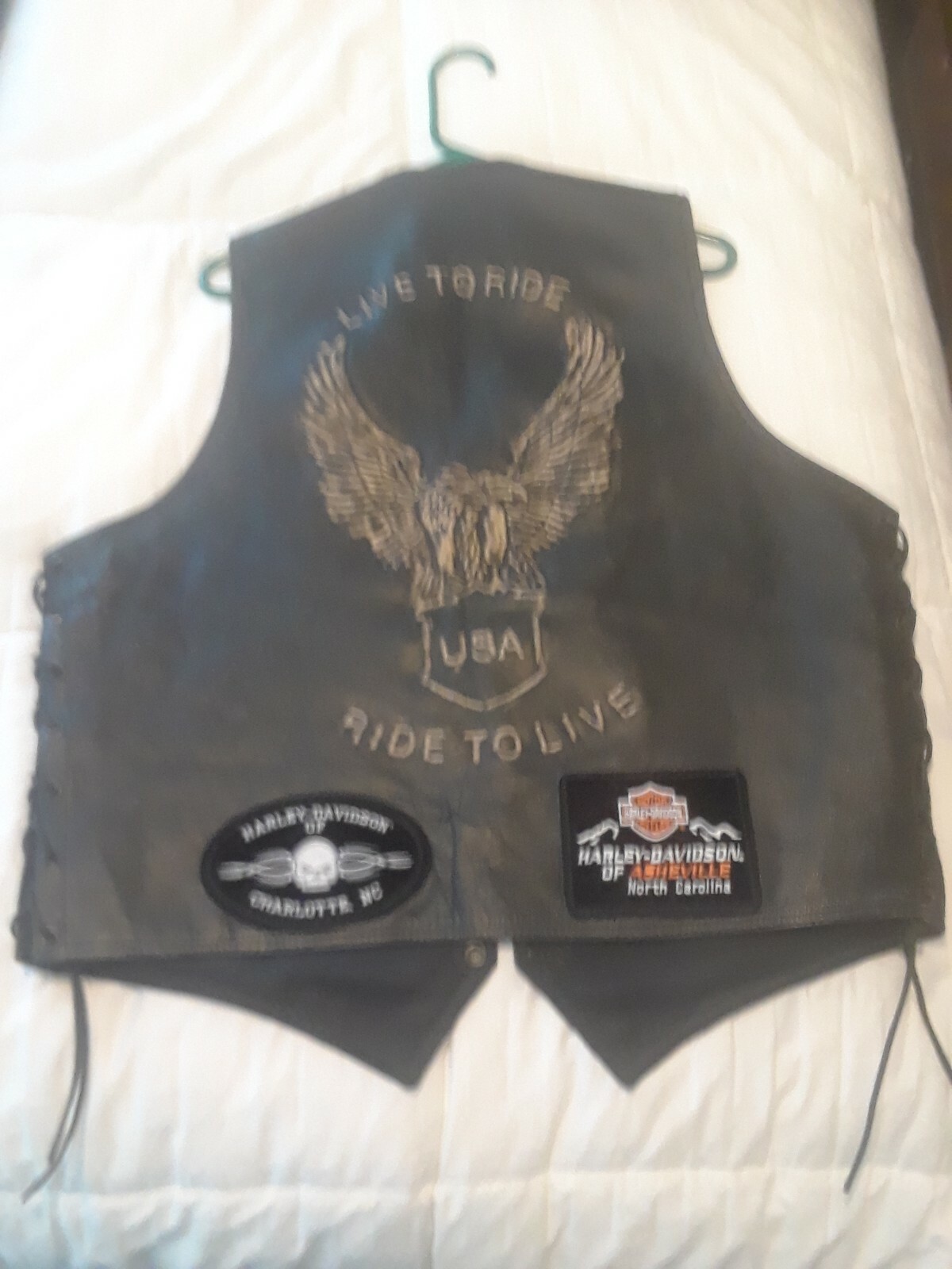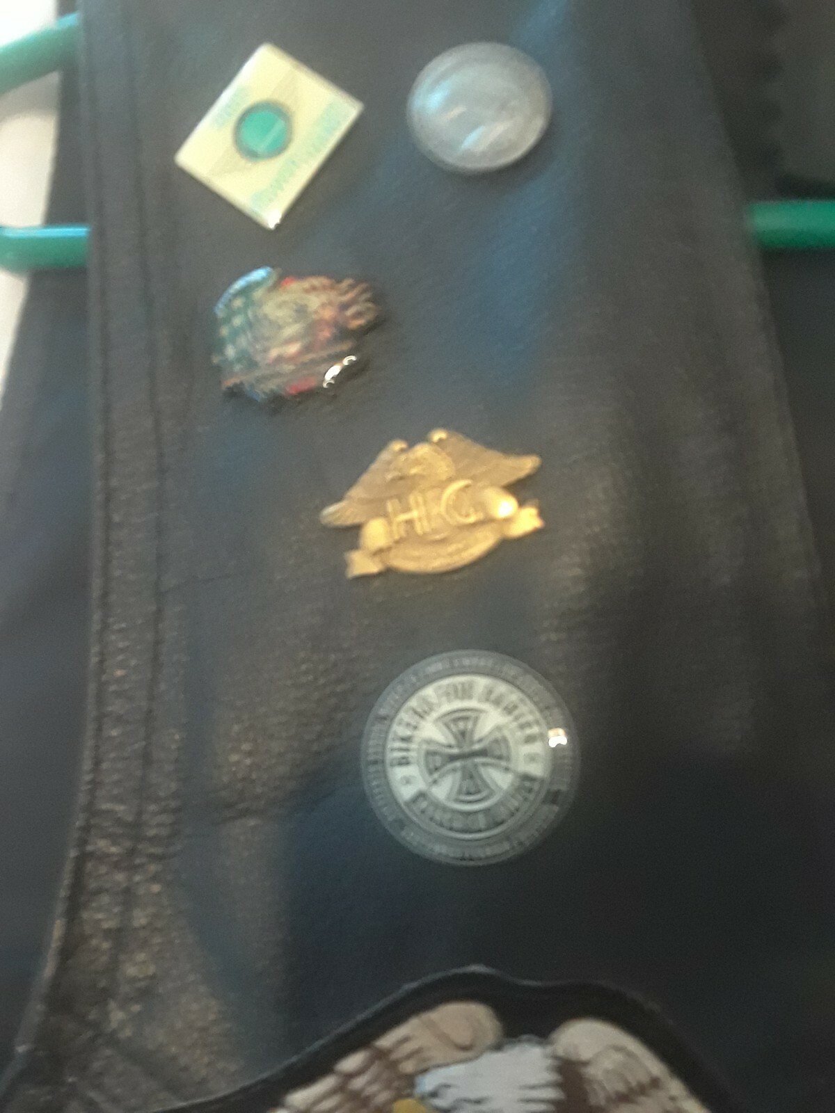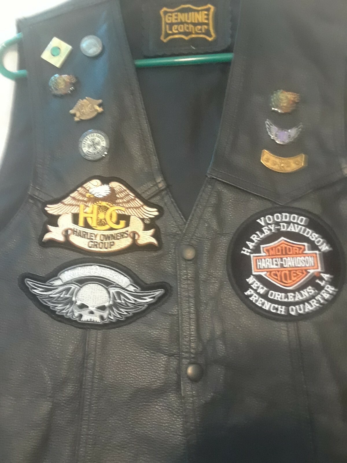 как выглядит Mens Size 44-46 Black Genuine Leather Bikers Vest With 8 Pins Patches фото