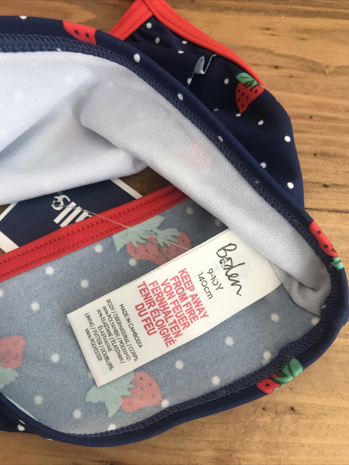 Boden Girls Bikini Swimsuit TOP 11-12Y Strawberry Halter NEW