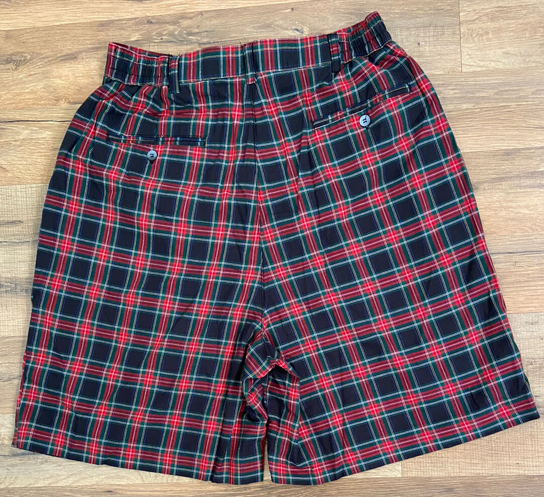 Vintage Izod Club Plaid High Waist Mom Golf Shorts Women s Size 8 Christmas