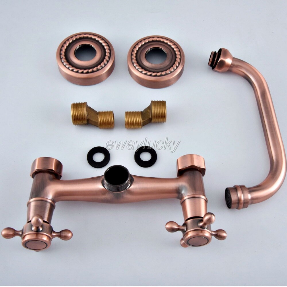 Antique Red Copper Swivel Spout Basin Sink Bathroom Mixer Tap Lavatory Faucet
