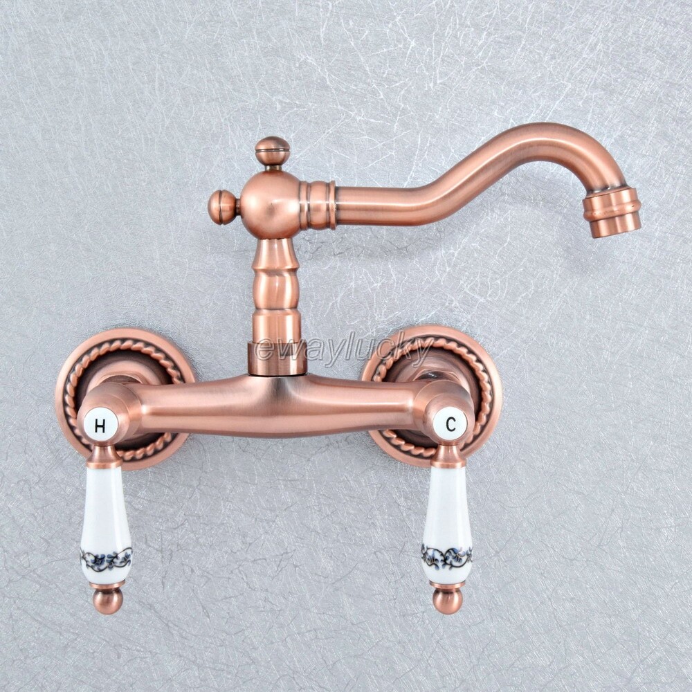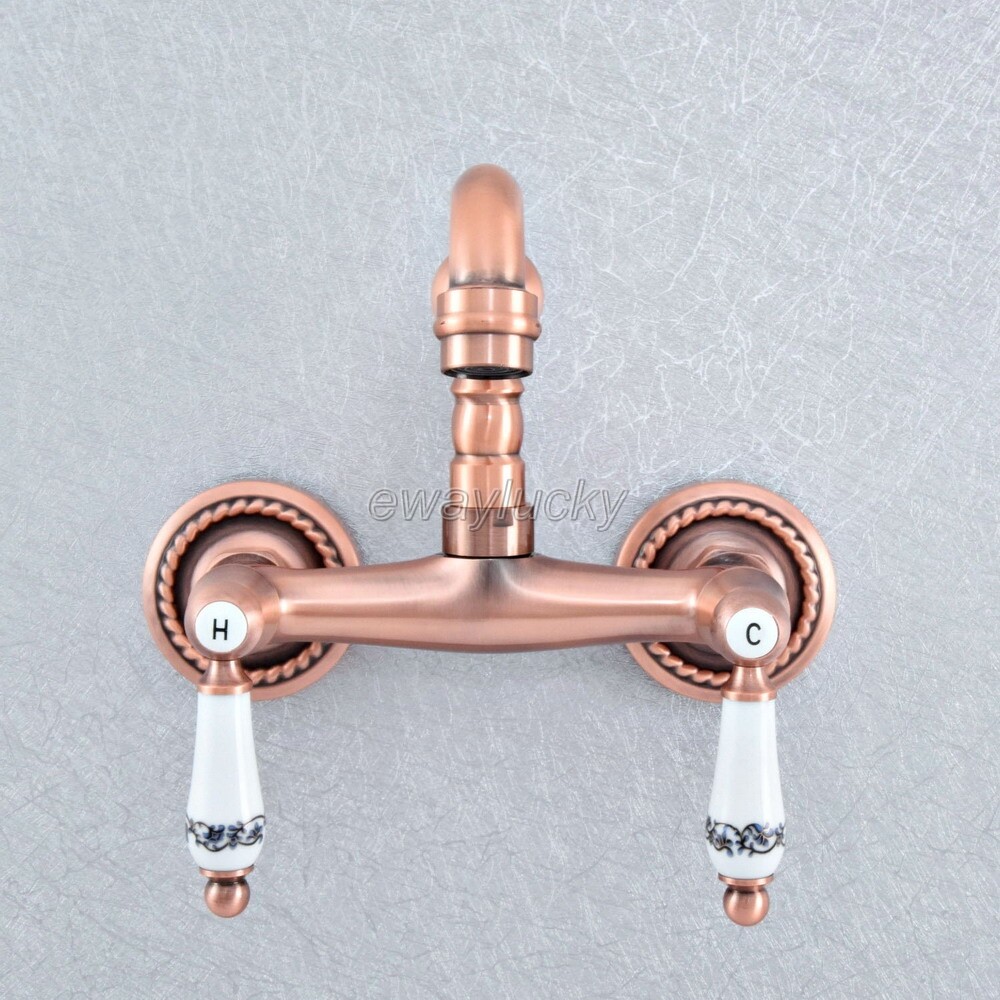 Antique Red Copper Swivel Spout Basin Sink Bathroom Mixer Tap Lavatory Faucet