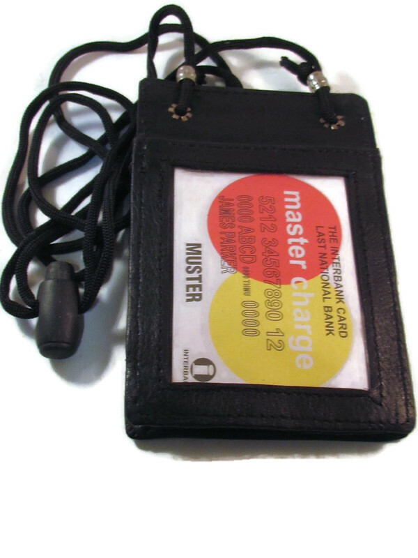 как выглядит SCHAEFER BEER BLACK LEATHER ID / BADGE HOLDER POUCH with lanyard фото