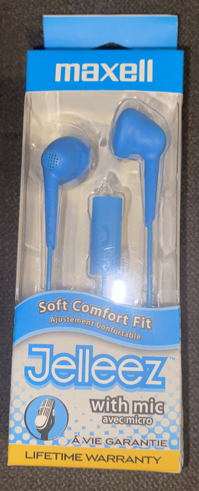 Maxell Jelleez Earbuds With Mic Blue Soft Comfort Fit Model MAX191568