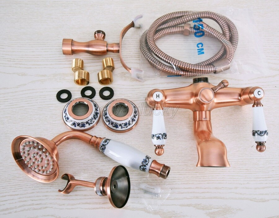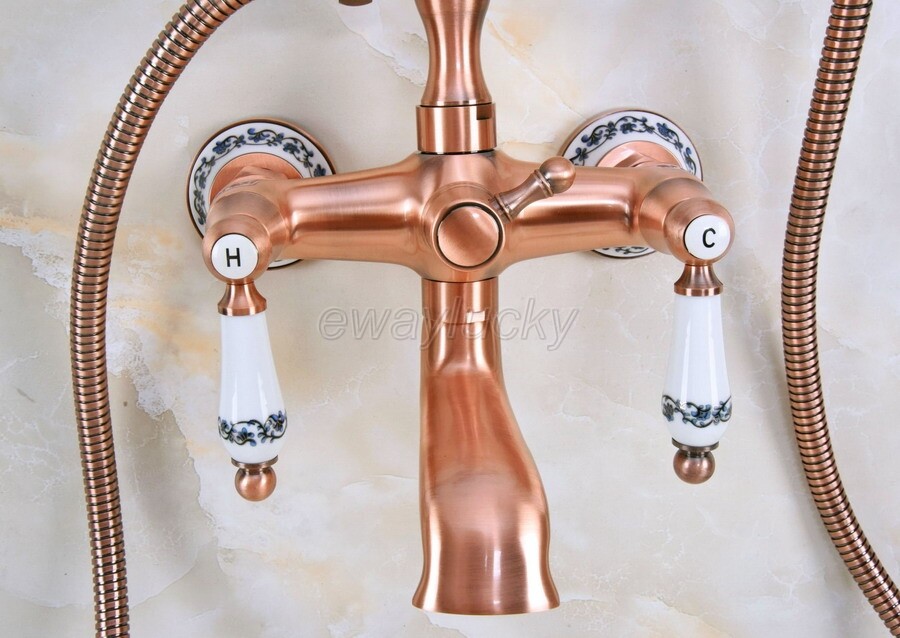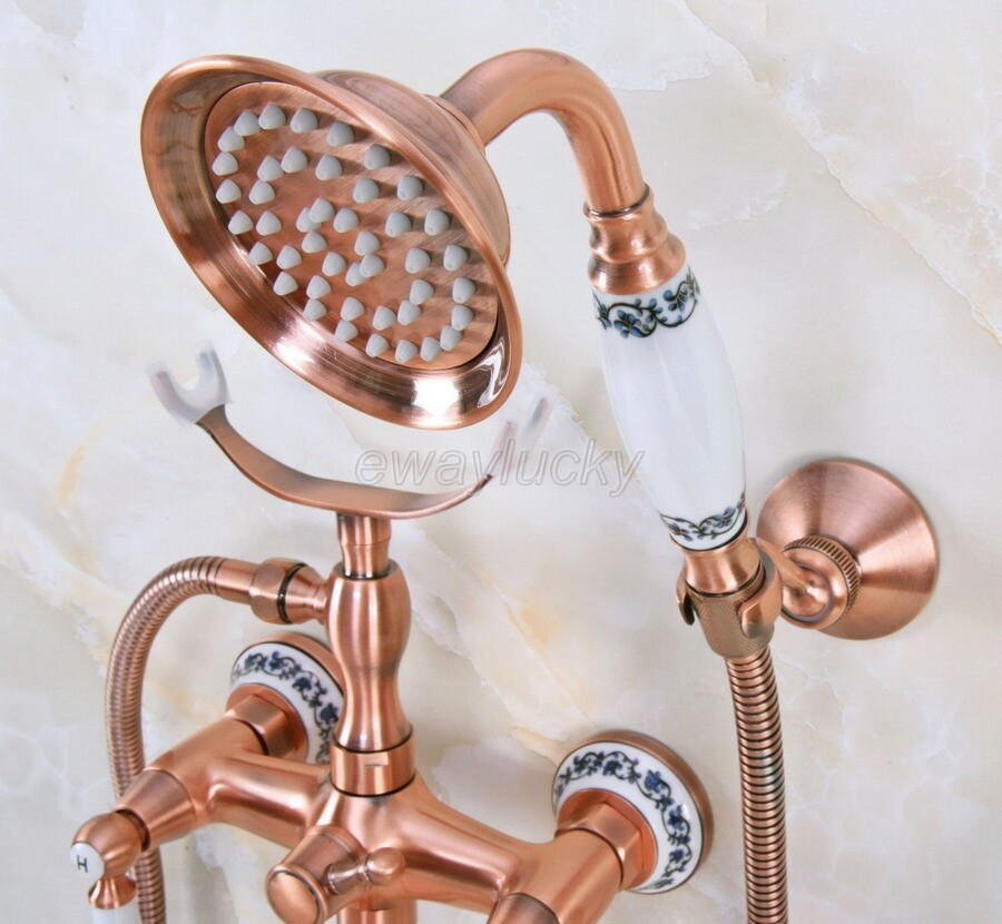 как выглядит Red Copper Clawfoot Bath Tub Faucet with Hand Shower Mixer Tap Wall Mount wna379 фото