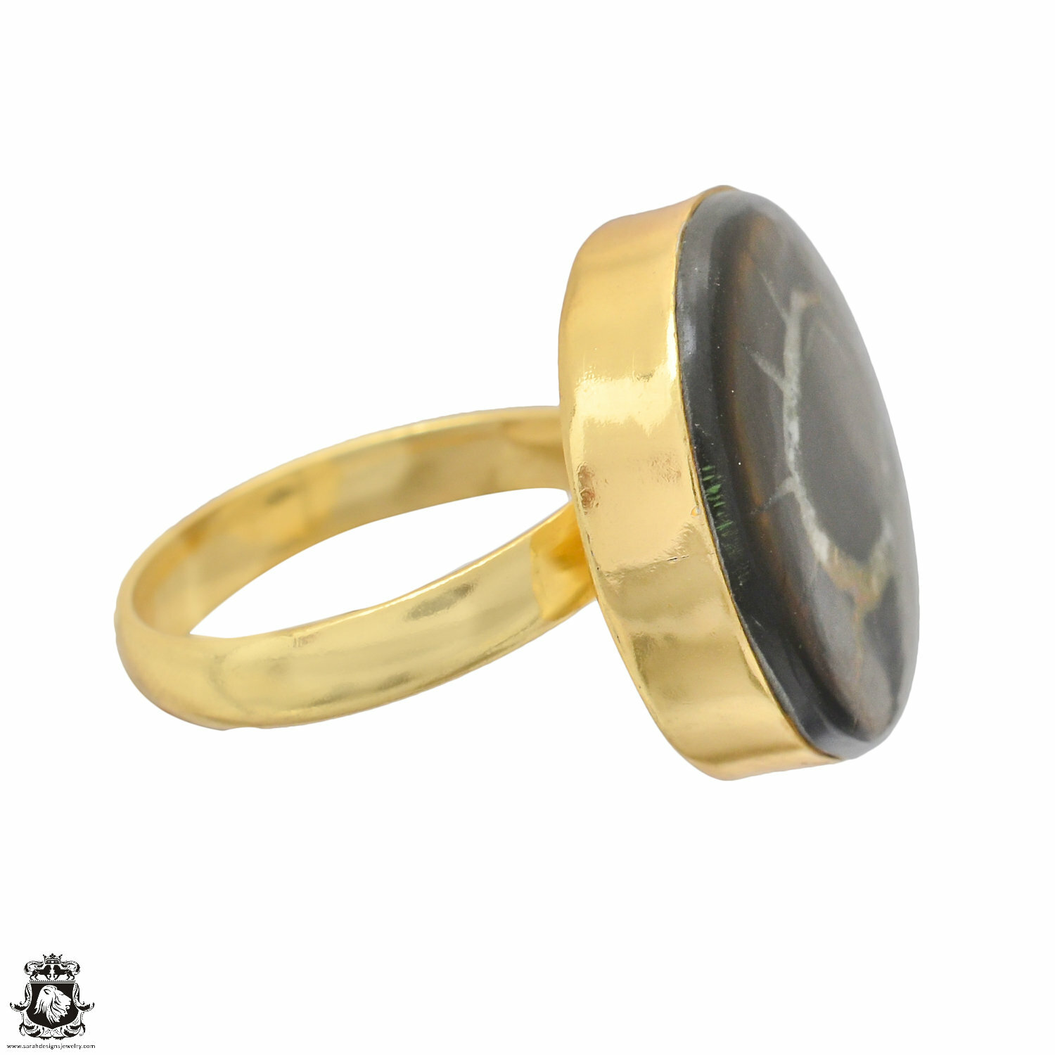 Size 10.5 - Size 12 Adjustable Septarian Nodule 24K Gold Plated Ring GPR1227