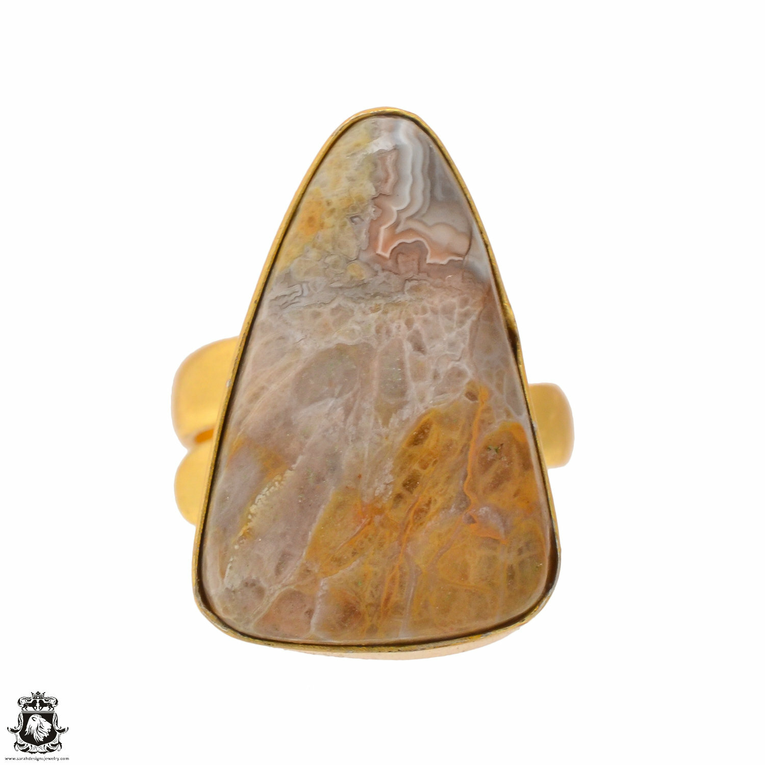 Size 6.5 - Size 8 Adjustable Crazy Lace Agate 24K Gold Plated Ring GPR1726