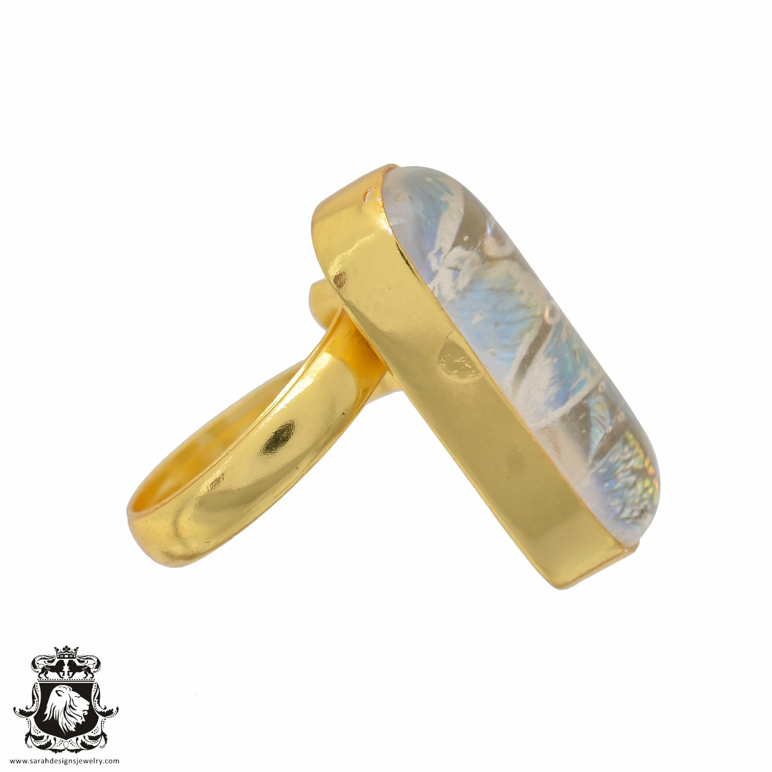 Size 6.5 - Size 8 Adjustable Dichroic Murano Glass 24K Gold Plated Ring GPR665