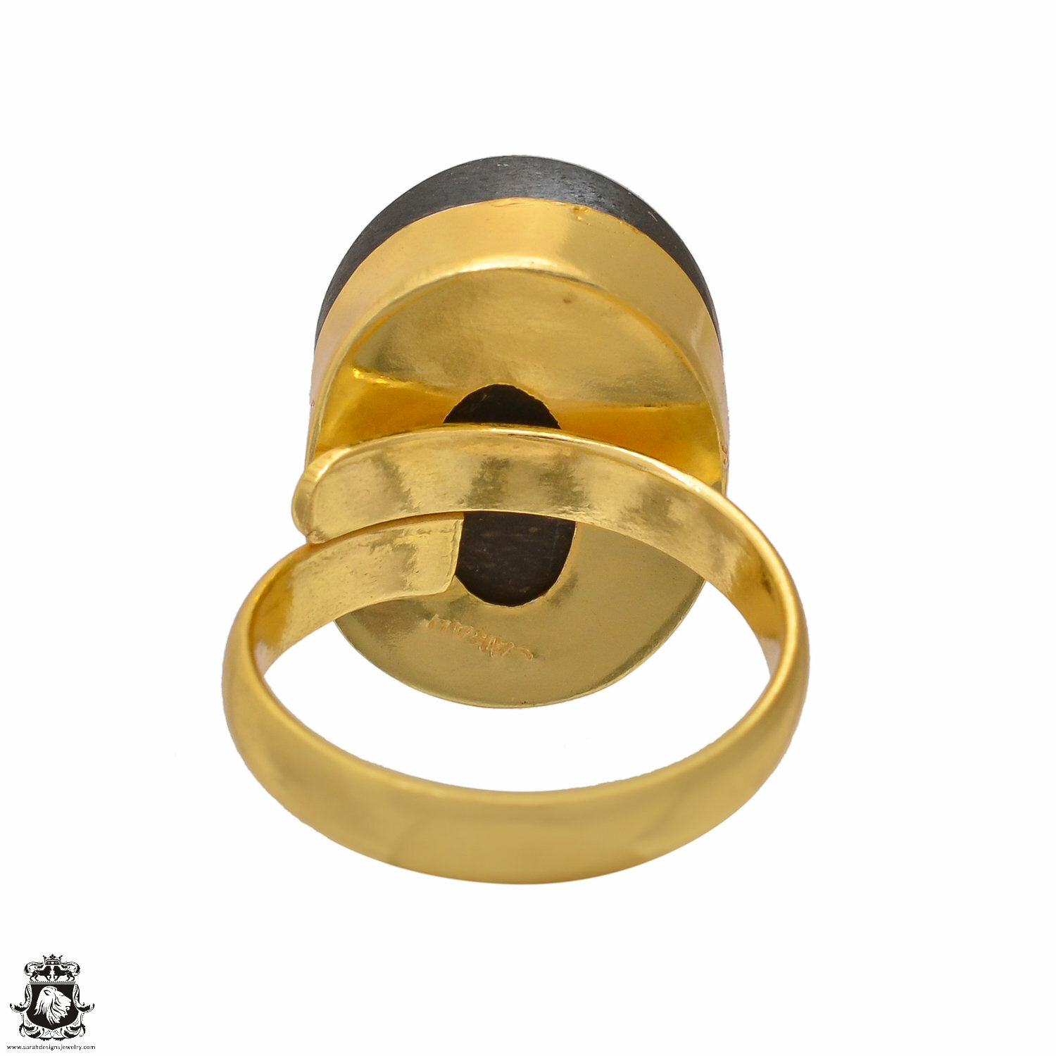 как выглядит Size 6.5 - Size 8 Adjustable Umba Sapphire Obsidian 24K Gold Plated Ring GPR1558 фото