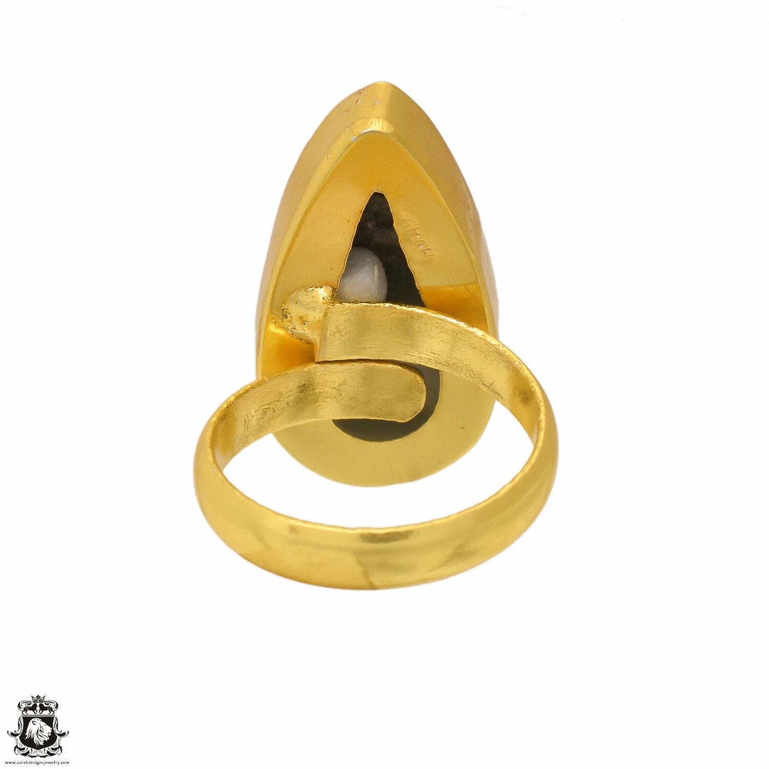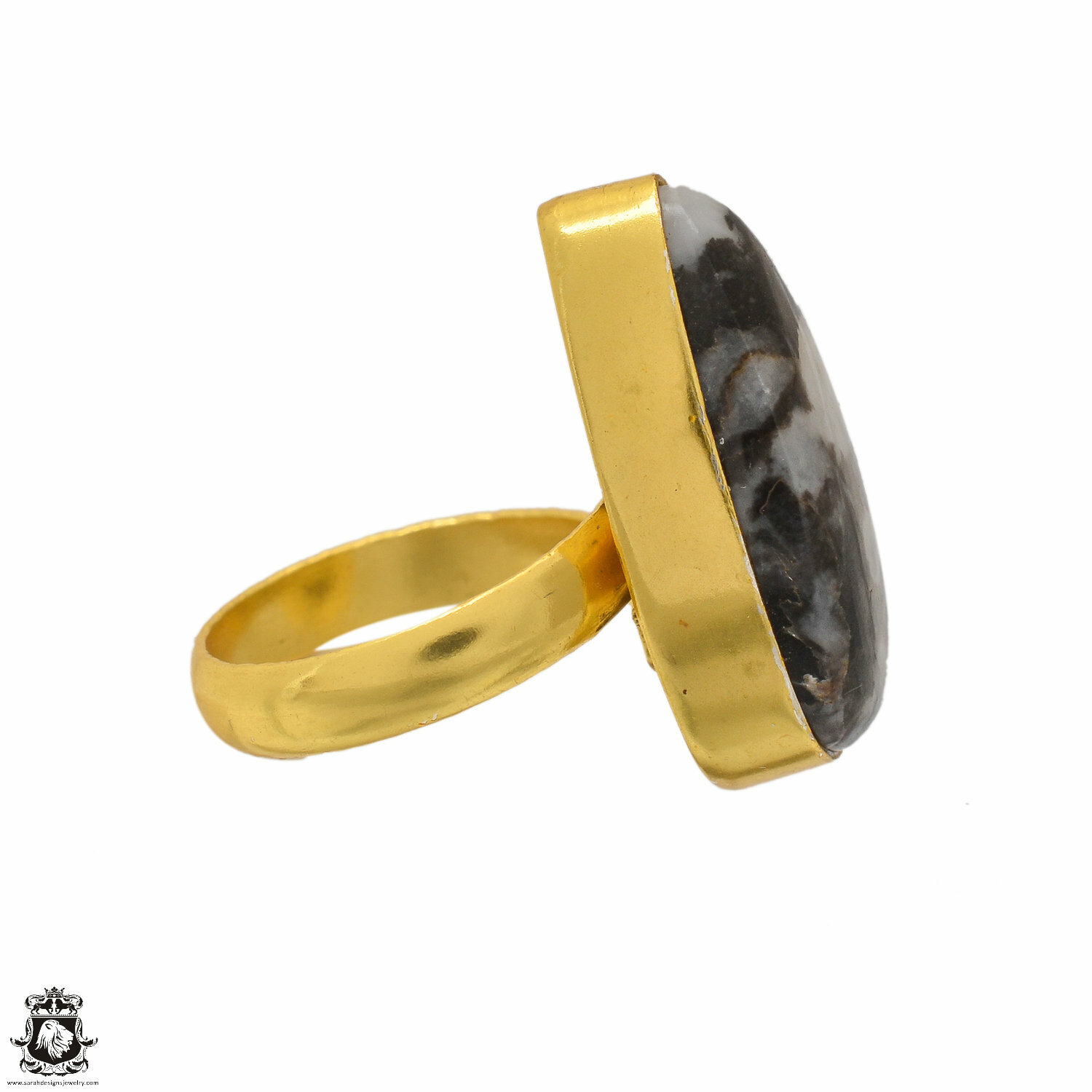 Size 7.5 - Size 9 Adjustable Zebra Dolomite 24K Gold Plated Ring GPR1632
