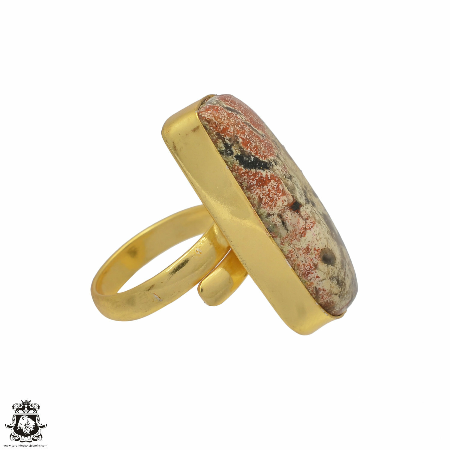 Size 7.5 - Size 9 Adjustable Wild Horse Jasper 24K Gold Plated Ring GPR16