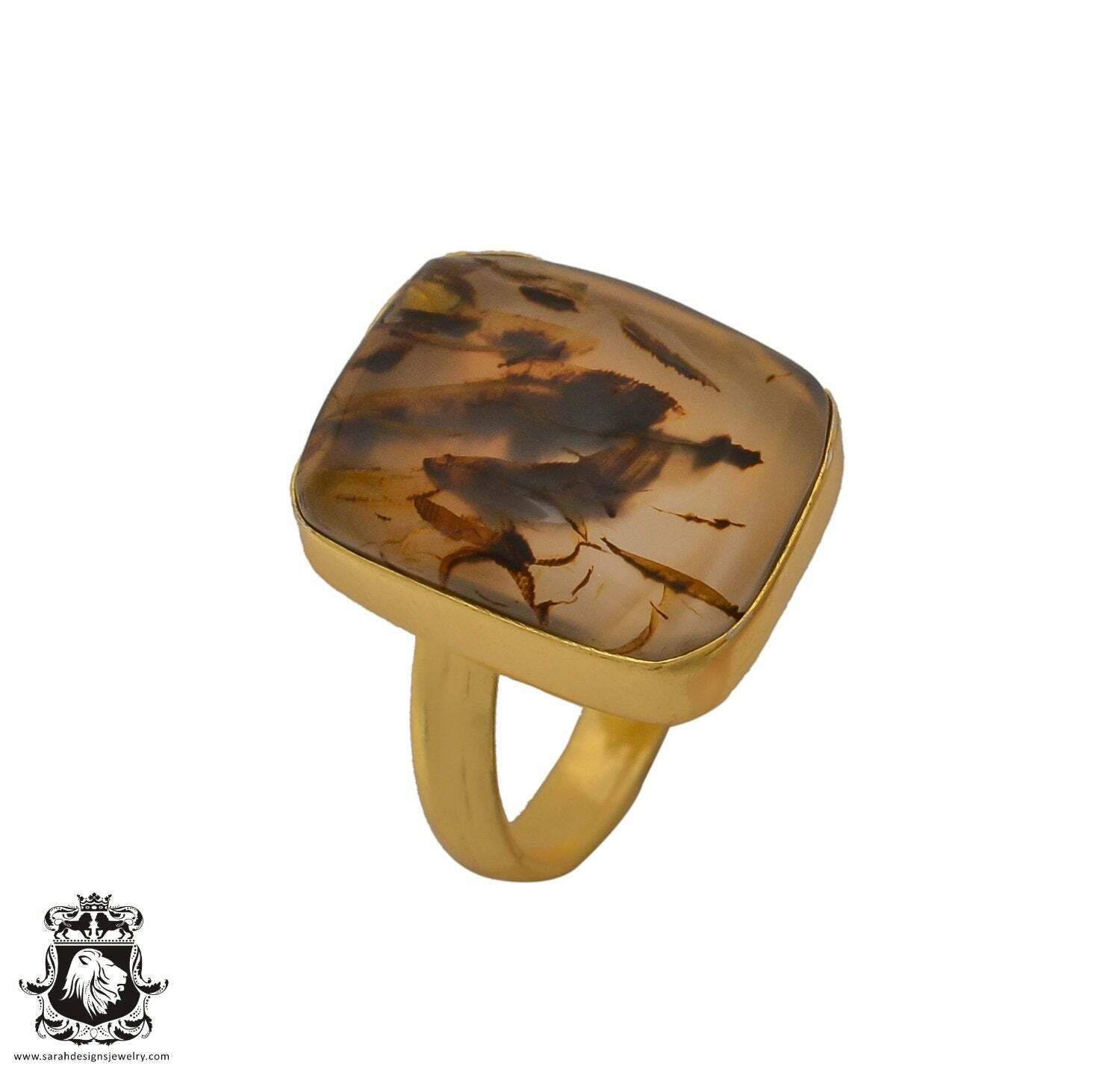 Size 7.5 - Size 9 Adjustable Scenic Agate 24K Gold Plated Ring GPR619