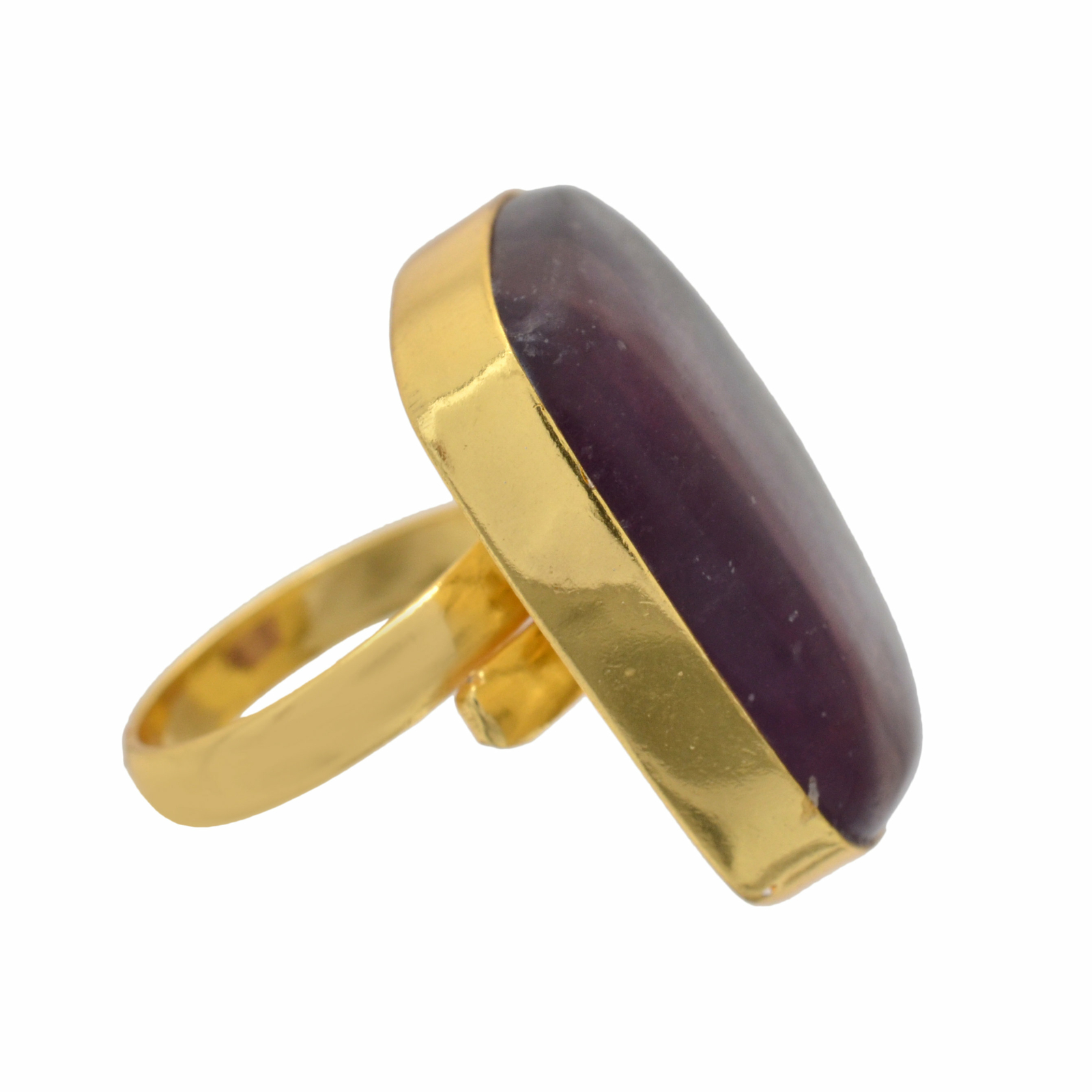 Size 8.5 - Size 10 Adjustable Fluorite 24K Gold Plated Ring GPR1158