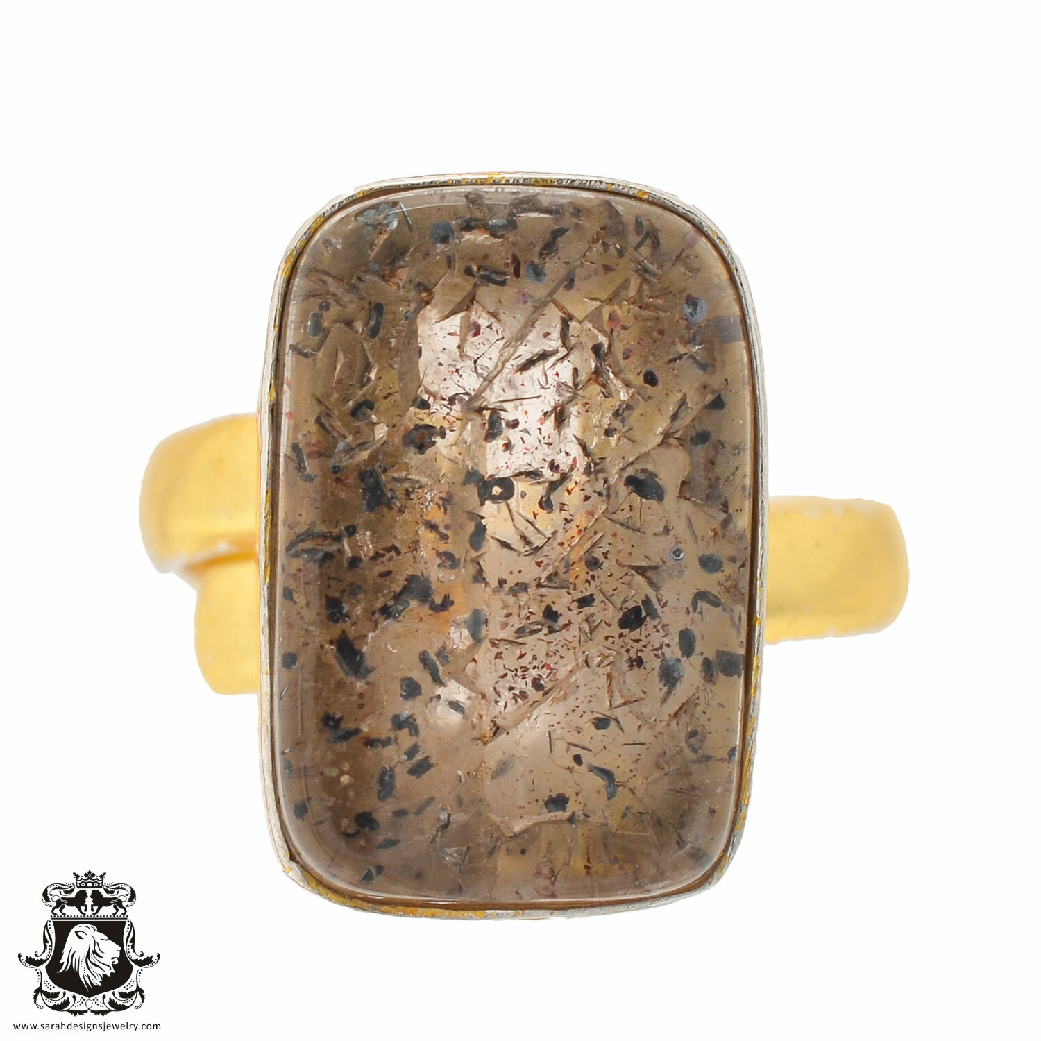 как выглядит Size 8.5 - Size 10 Adjustable Lodolite Quartz 24K Gold Plated Ring GPR834 фото