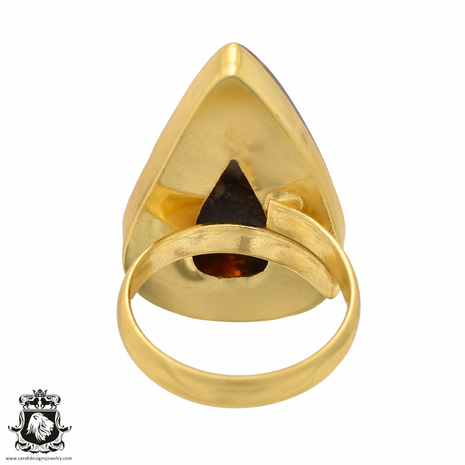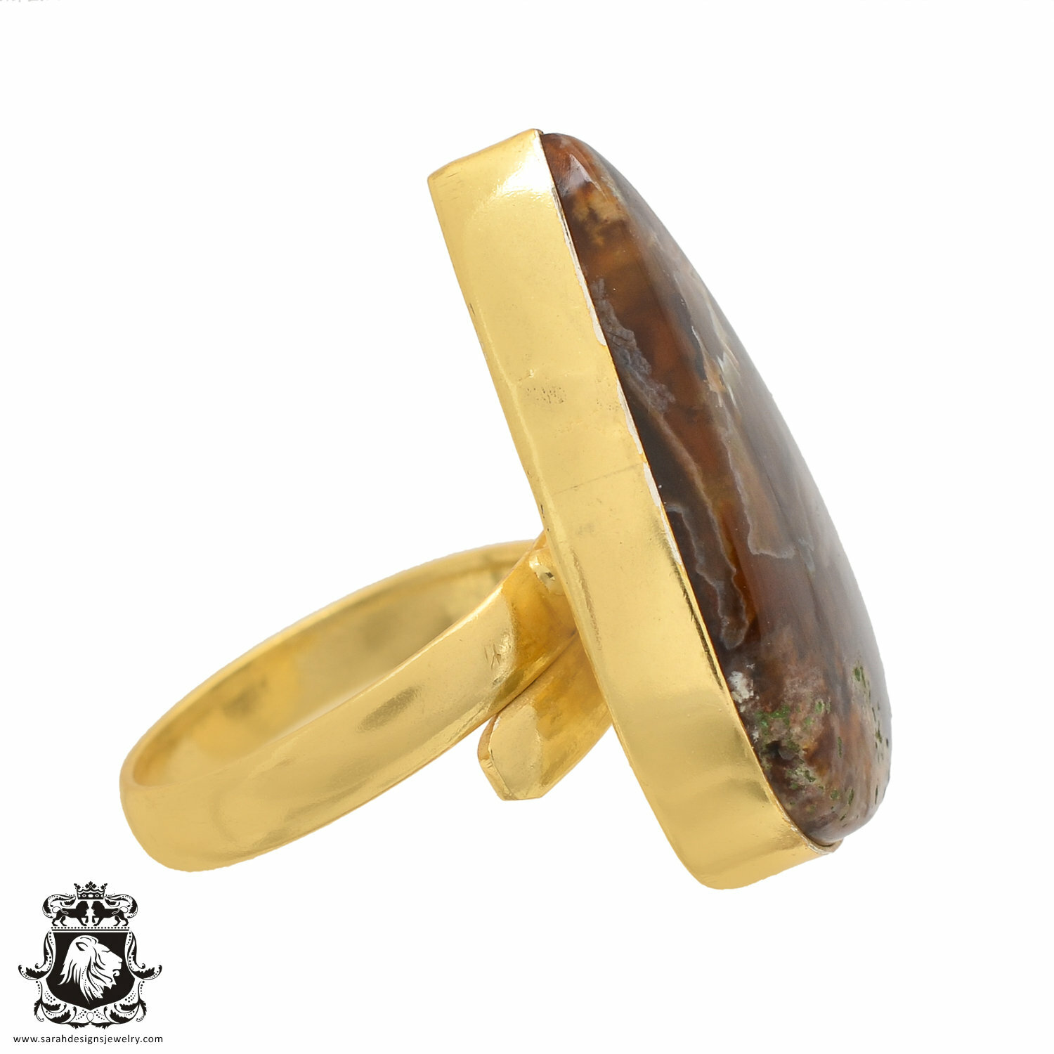 Size 8.5 - Size 10 Adjustable Stick Agate 24K Gold Plated Ring GPR581