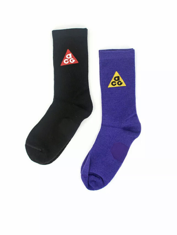 как выглядит New NIKE ACG 365 CREW SOCKS 2 PAIR Mens Size 10-11.5 SK0156-967 Black Purple фото