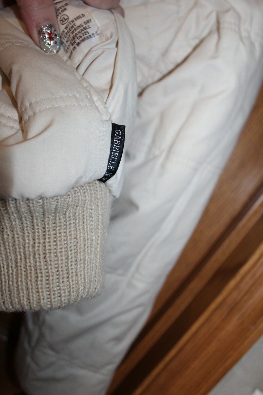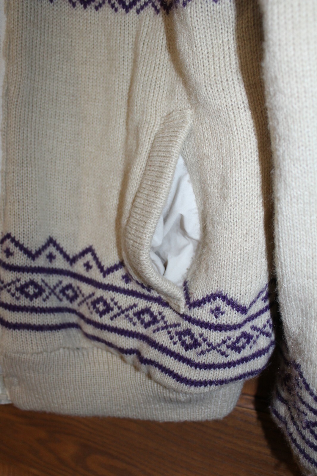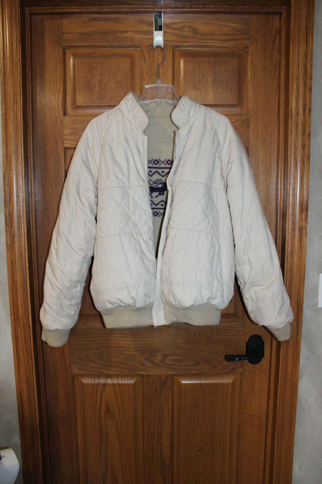 как выглядит Vtg GABRIELLE NY quilted reversible bomber zipper tan purple reindeer sweater XL фото
