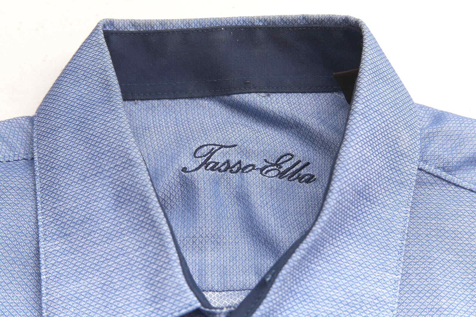как выглядит Tasso Elba Mens Large Blue Tiny Checked Cotton Polyester Long Sleeve Shirt фото
