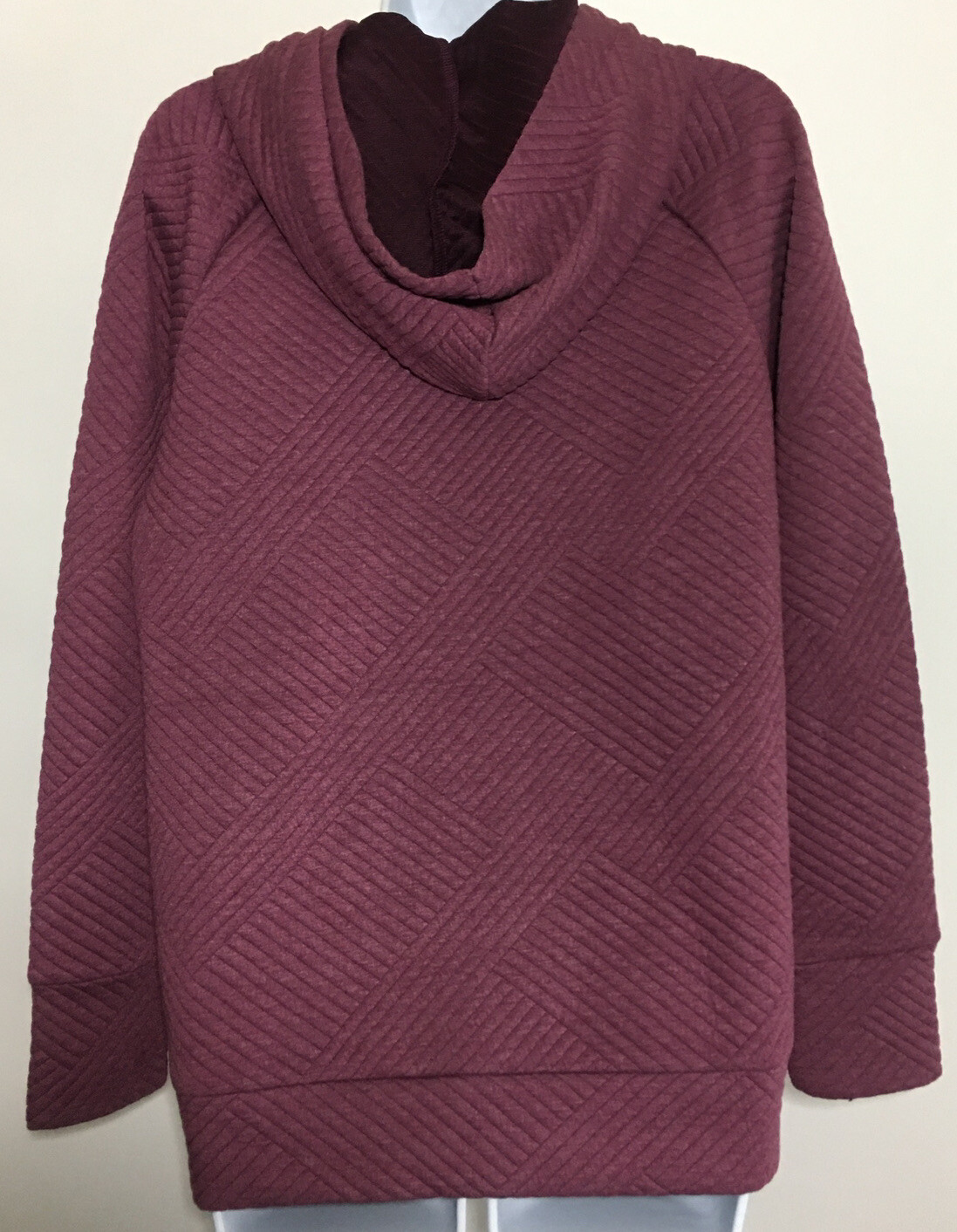 Womens Green Tea Pullover Hoodie Sweatshirt Quilted Long Sleeve Burgundy Size S