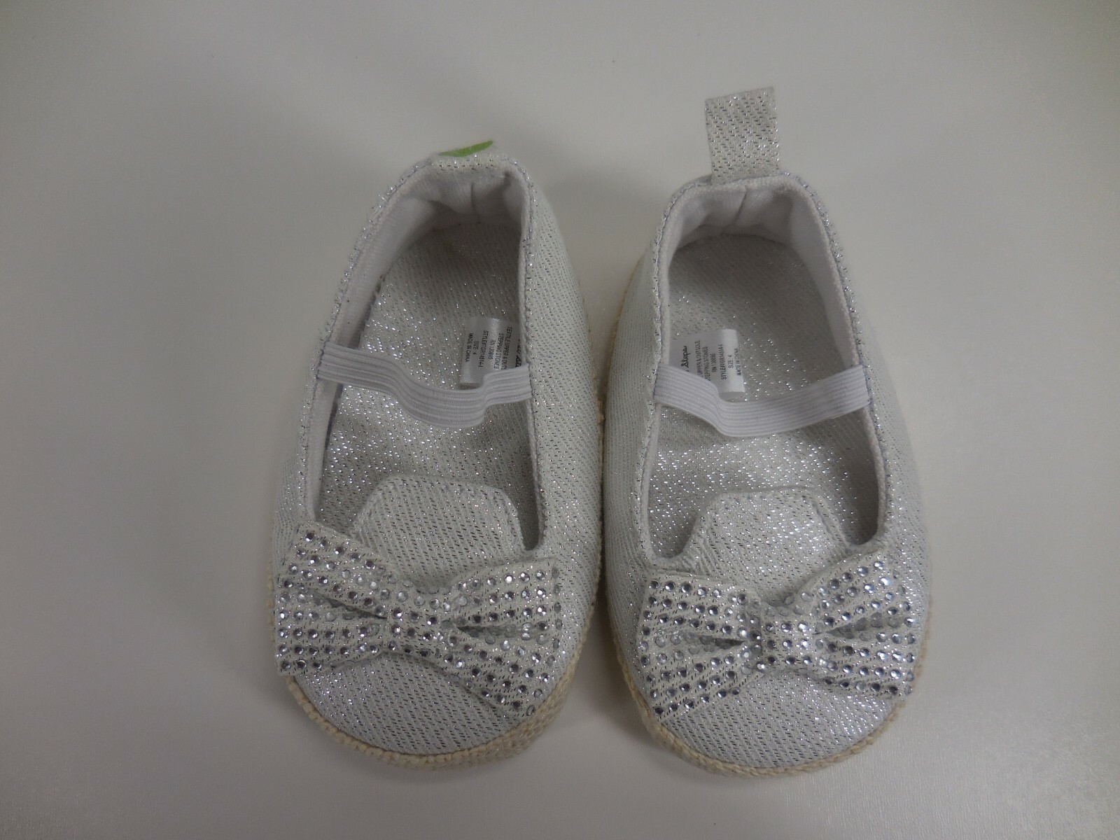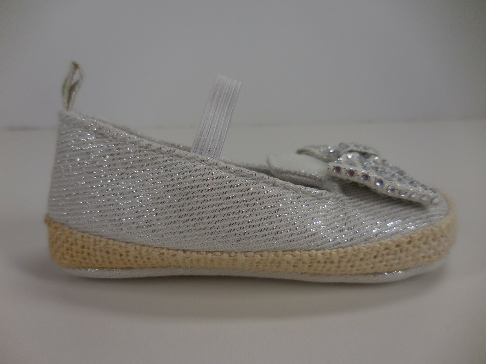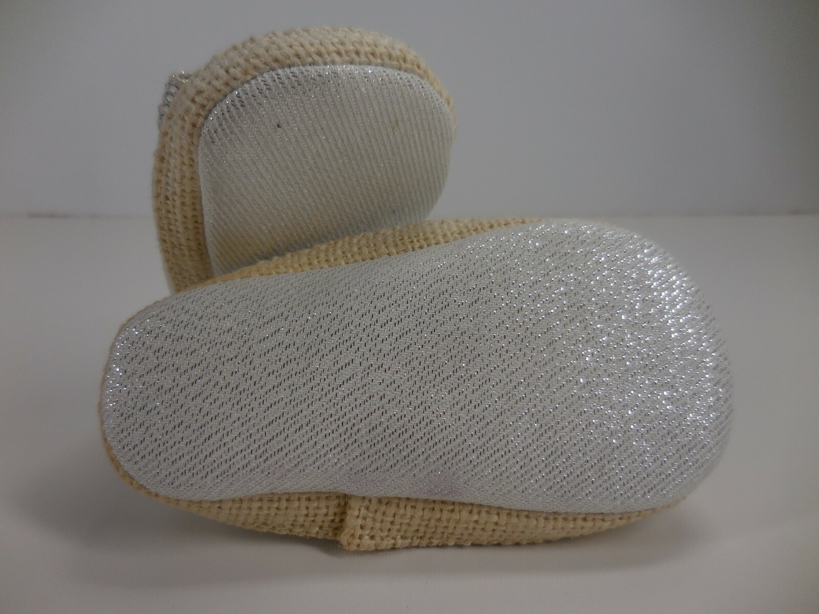 First Steps Size 4 Rhinestone Bow Baby Girl Beige Glitter Pull On Crib Shoes....