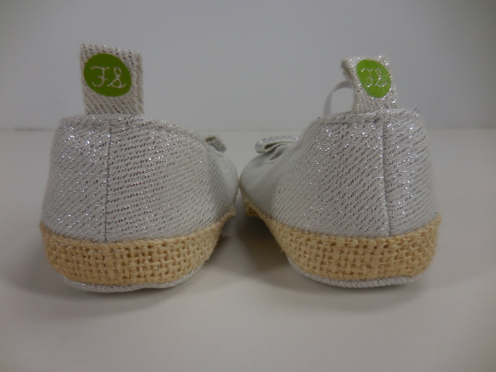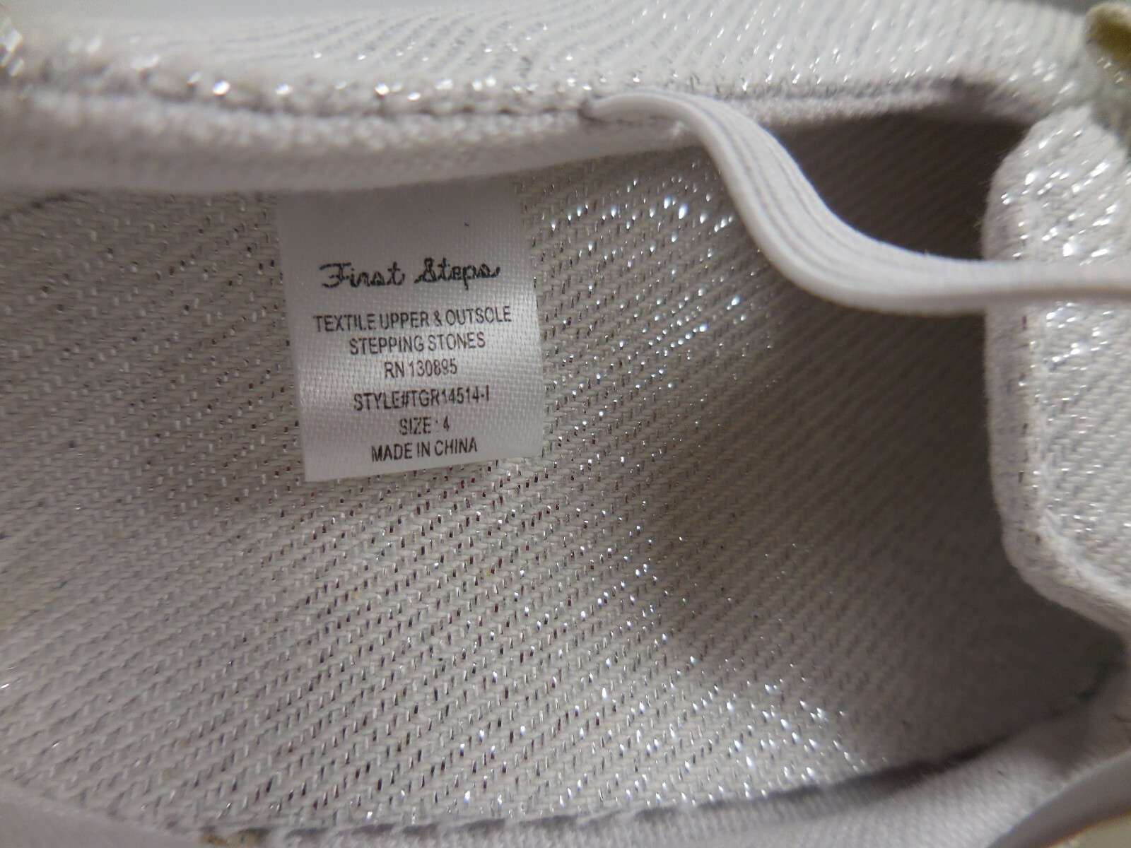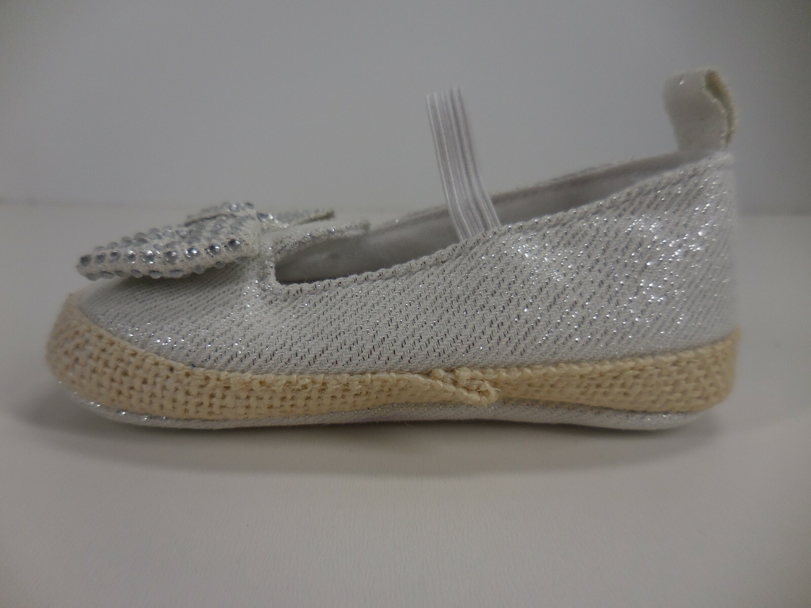 First Steps Size 4 Rhinestone Bow Baby Girl Beige Glitter Pull On Crib Shoes....