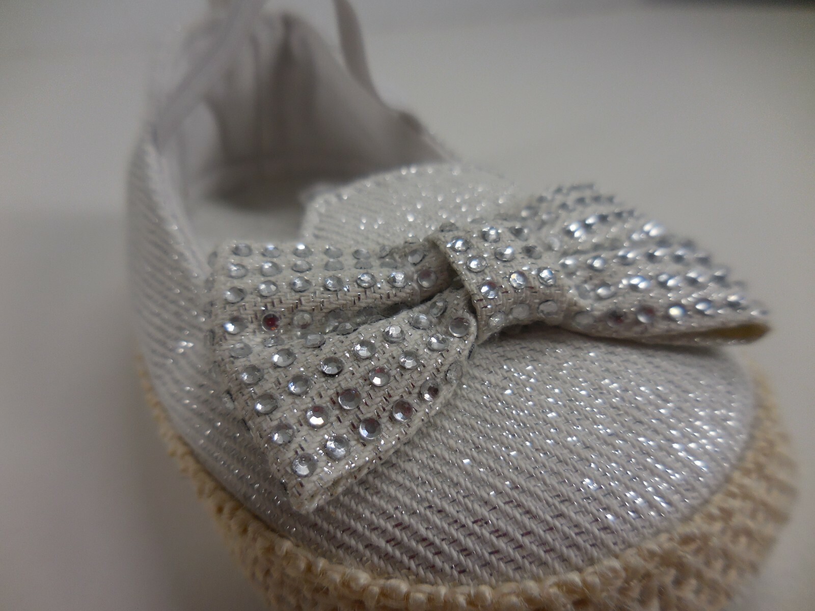 как выглядит First Steps Size 4 Rhinestone Bow Baby Girl Beige Glitter Pull On Crib Shoes.... фото