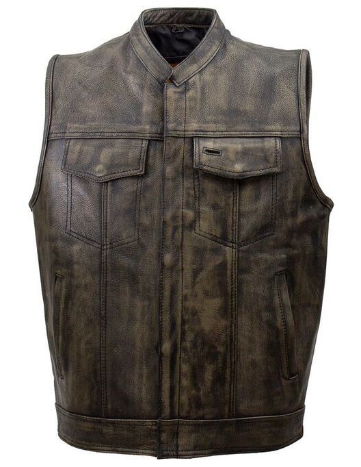 MEN'S MOTORCYCLE SON OF ANARCHY DISTRESSED LEATHER VEST WITH 2 GUN POCKETS NEW