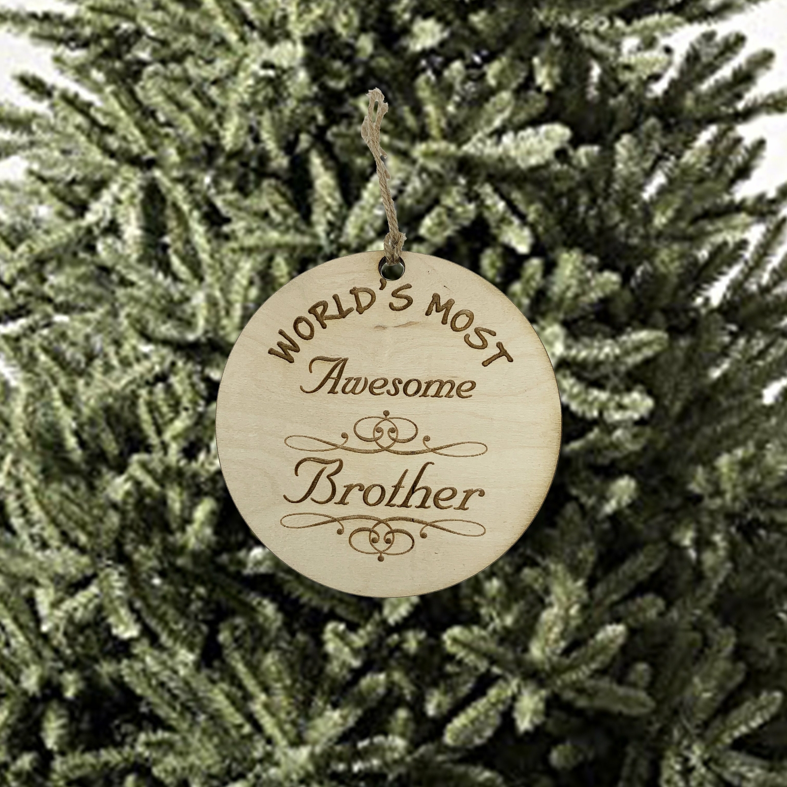 Worlds most Awesome Brother - Ornament - Raw Wood