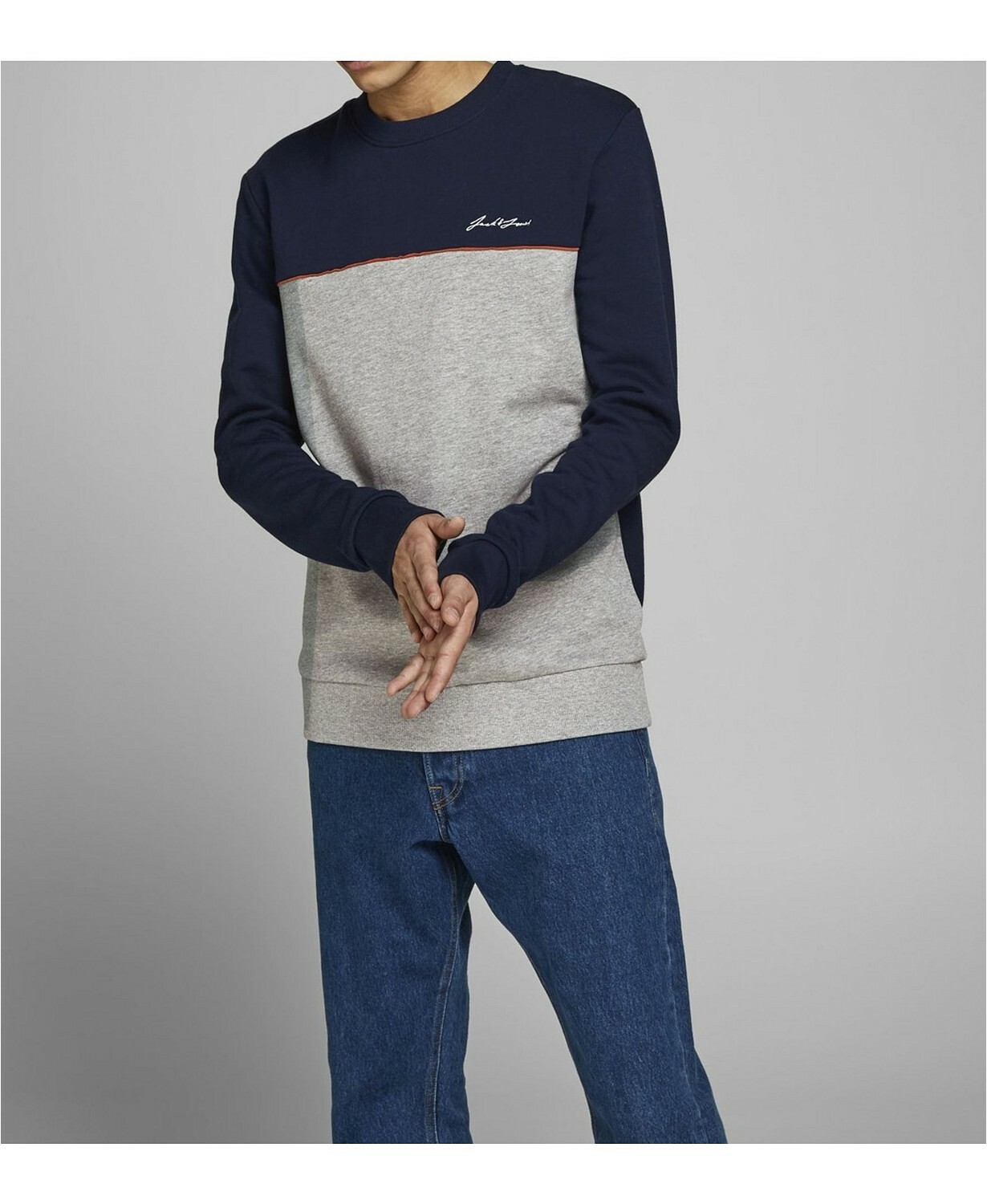 как выглядит Jack Jones Mens Pipe Contrast Sweatshirt Large Runs Small фото