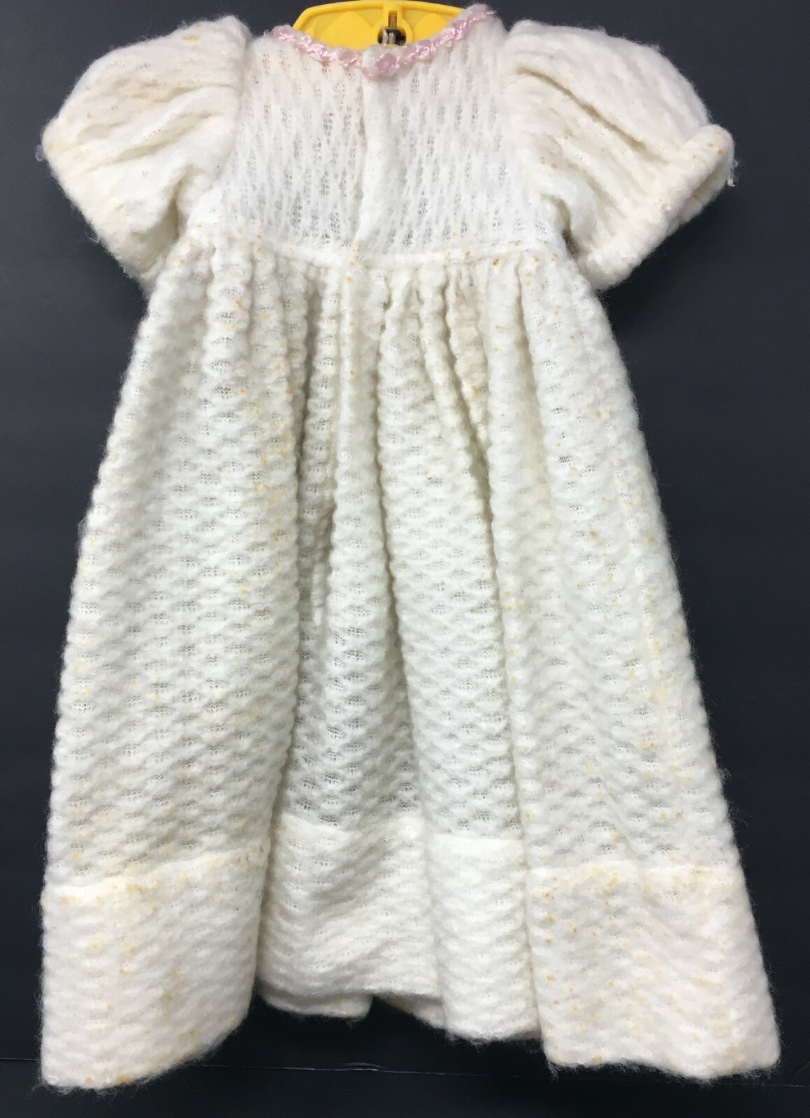 как выглядит Vintage Girls Toddlers Off White Dress With Pink Trim Puffy Sleeves фото