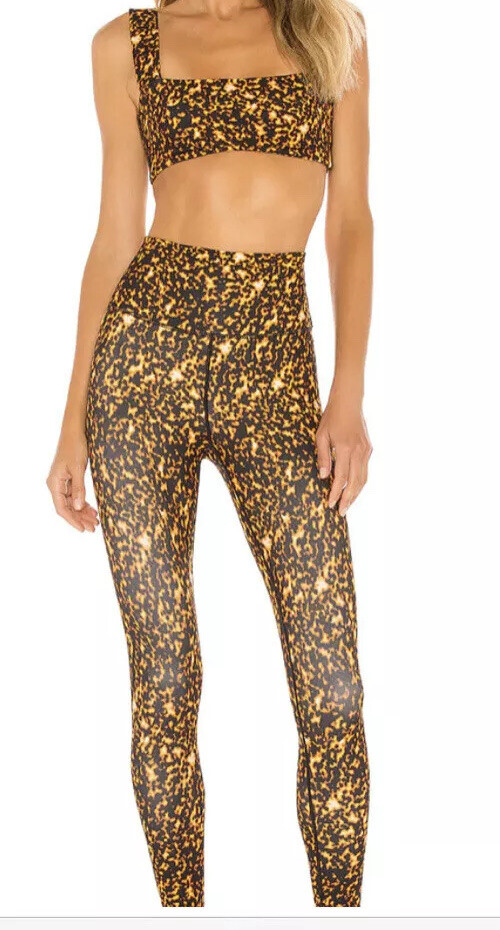 we wore what yoga outfit brown multi leggings and bra size XS