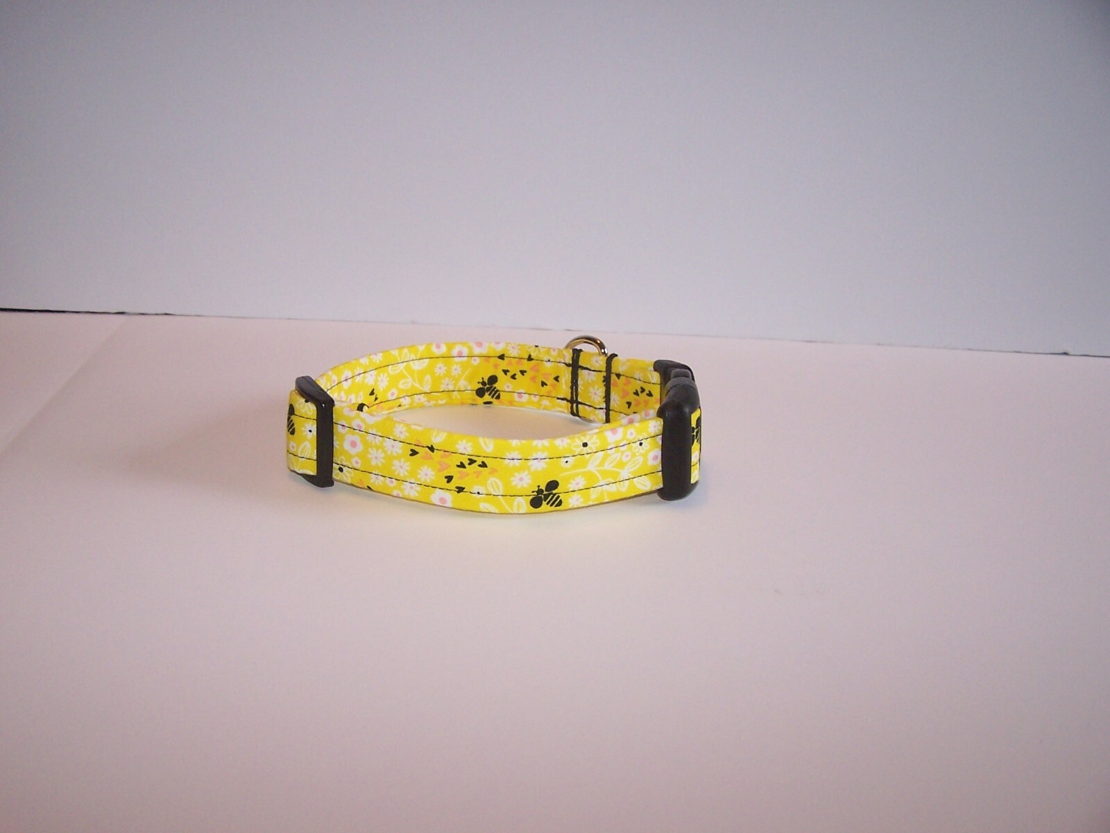 Wet Nose Designs Sunshine Day Dog Collar Flowers Floral Bees on Bright Yellow