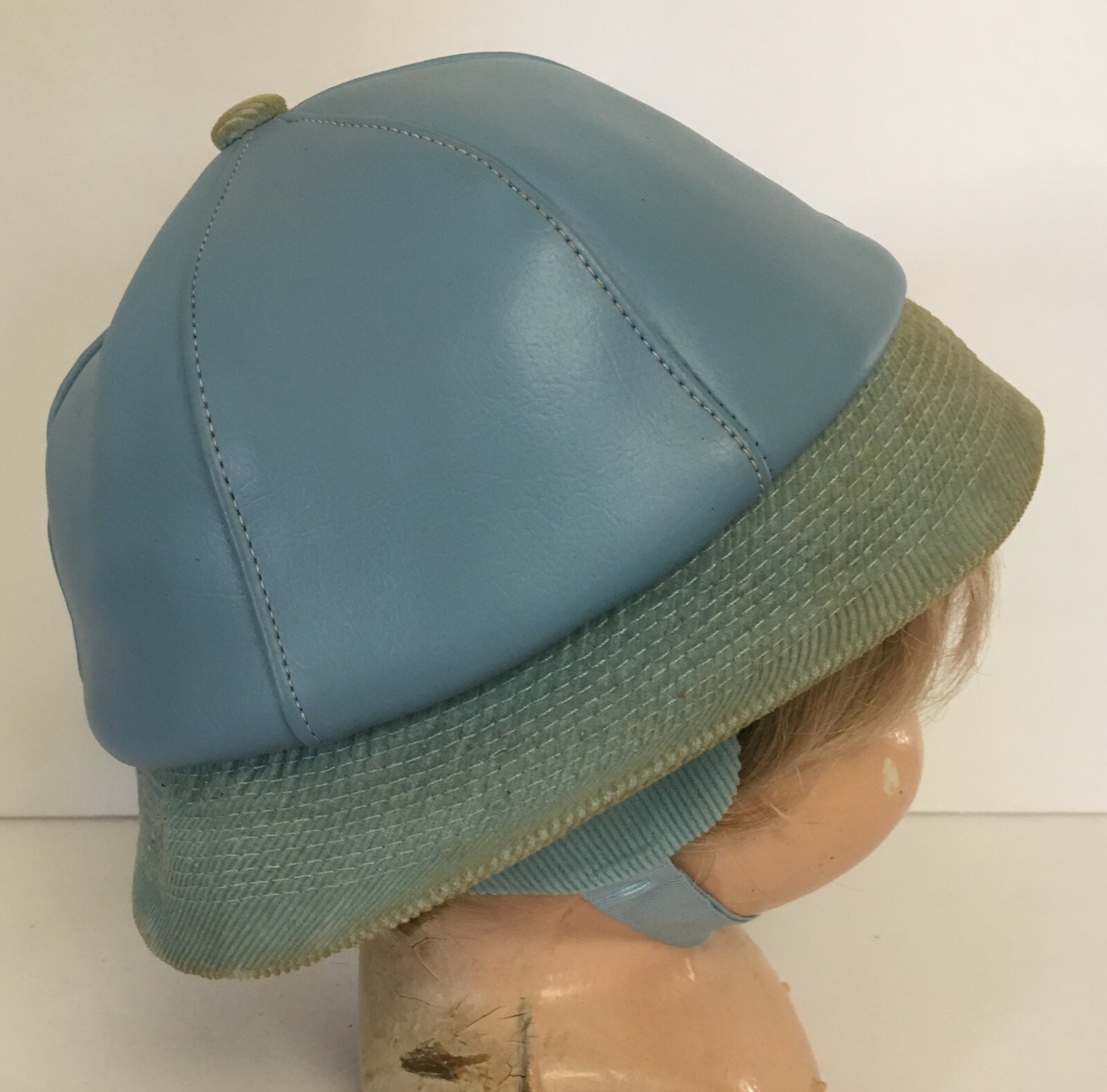 Vintage Boys Toddlers Boys Faux Leather Cap Hat With Flower Strap Size 18