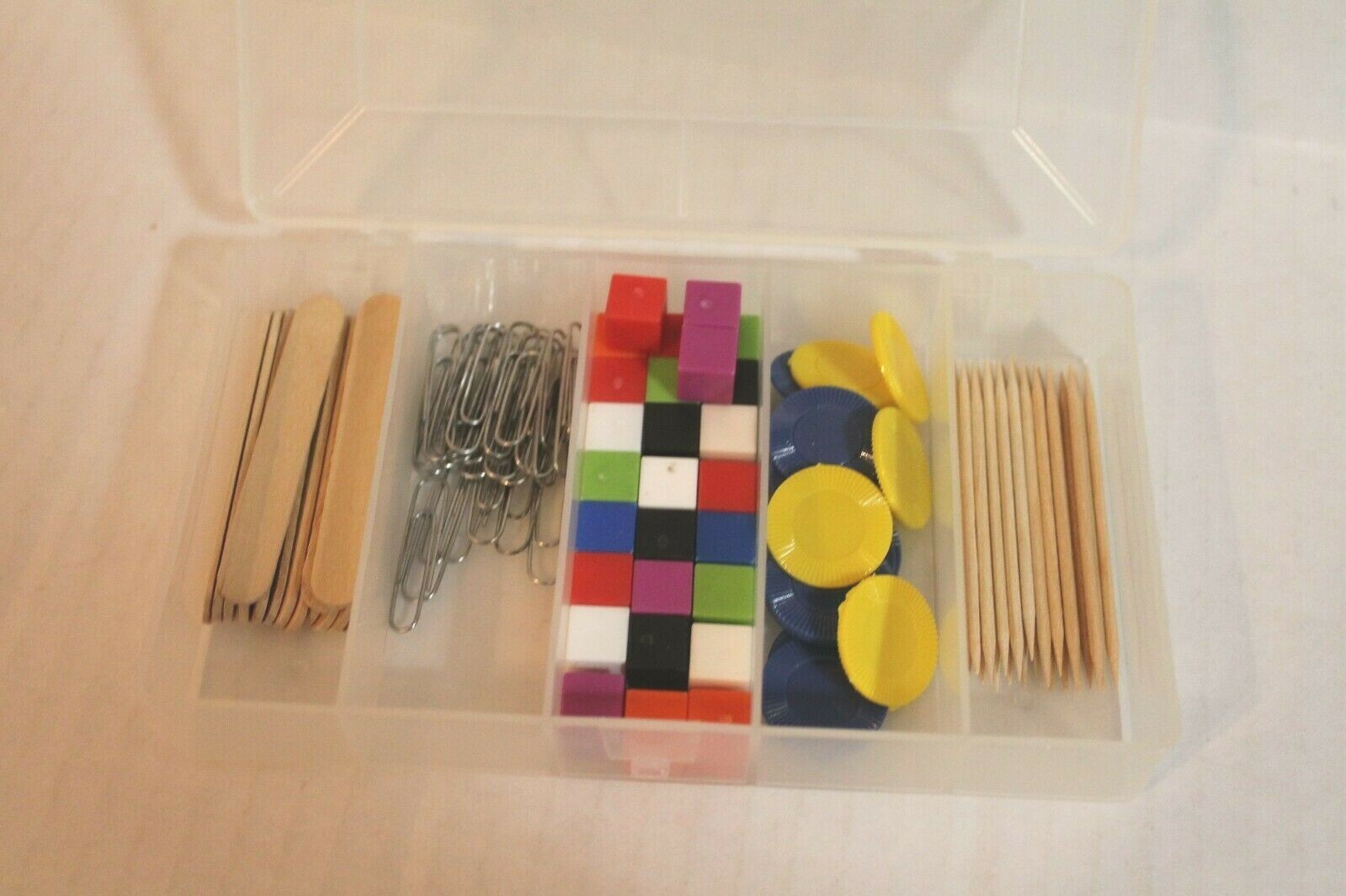 LOT of 10 Sets of Math Manipulatives Counting Aides in Plastic Boxes