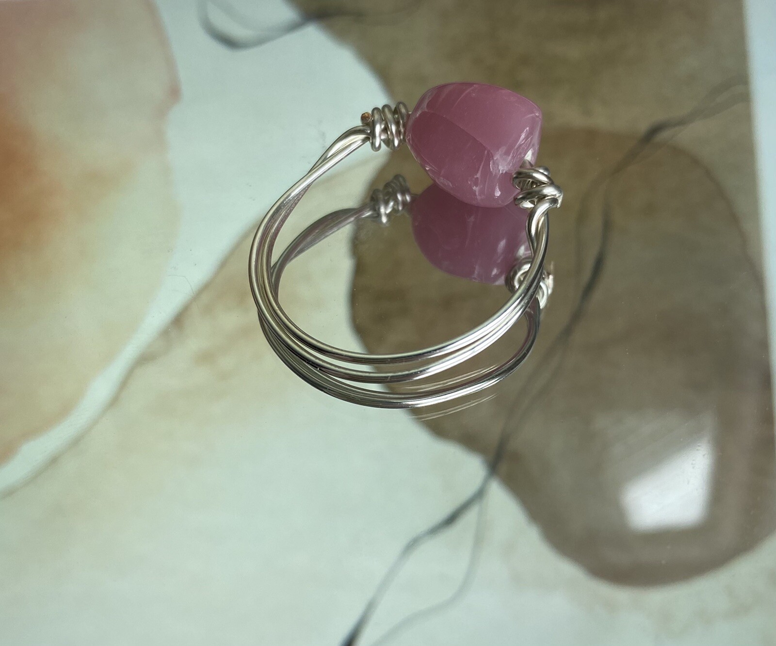 как выглядит Beautiful Pink Wire Wrapped Handmade Silver Ring Size 11.5 фото
