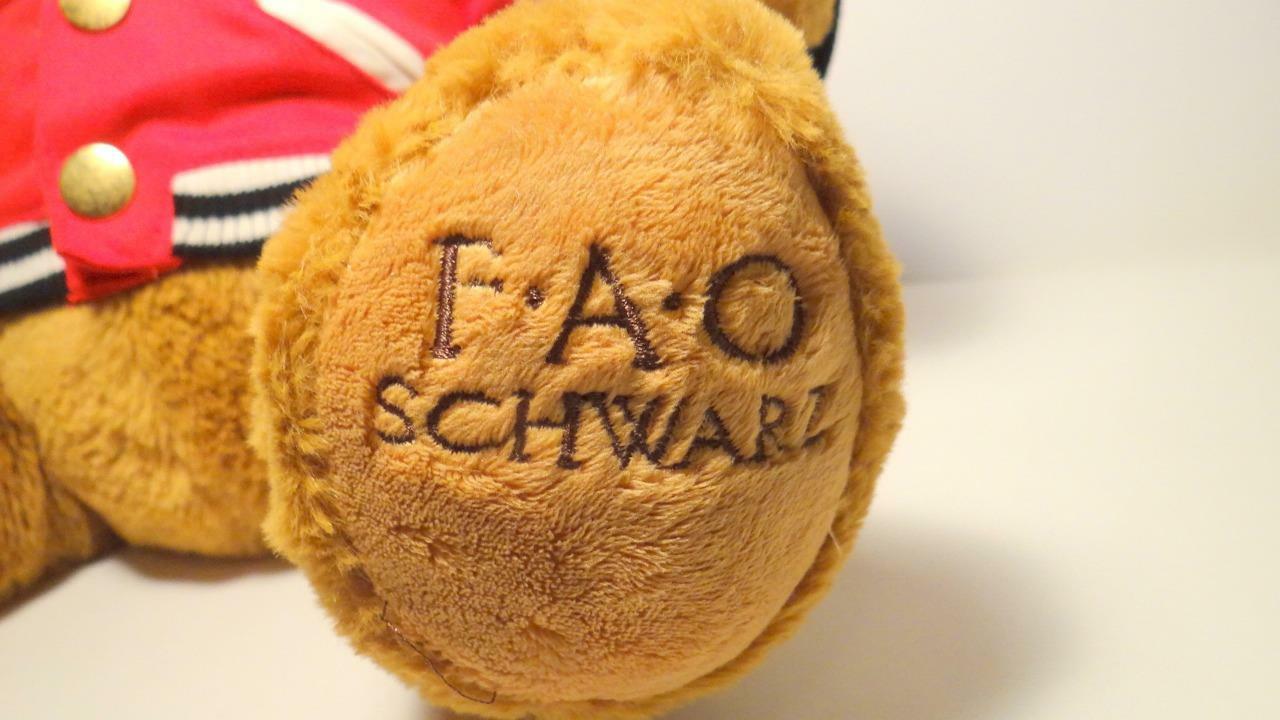 • FAO Schwarz 2019 Anniversary Brown Teddy Bear Plush Letterman Varsity Jacket