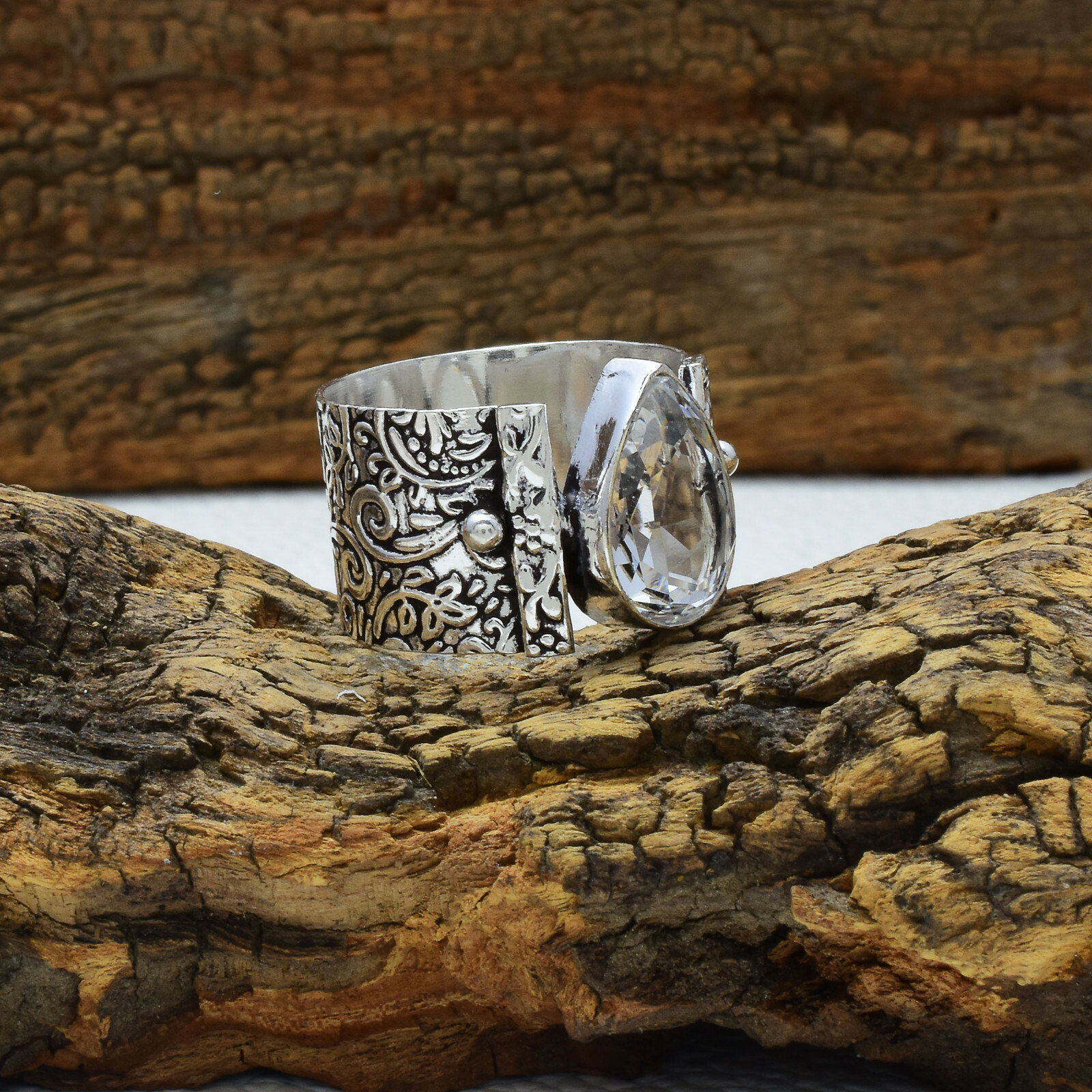 как выглядит Amazing White Topaz Gemstone 925 Sterling Silver Band Ring all Size фото