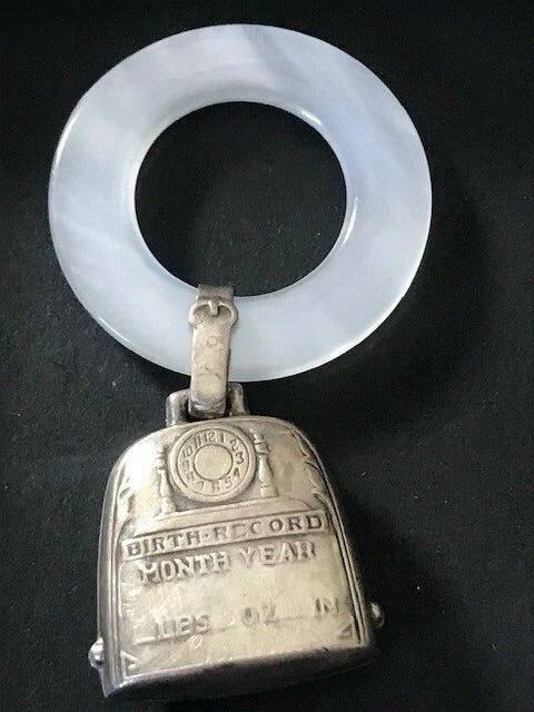 как выглядит Vintage Victorian Sterling Silver Mother of Pearl Infant Teething Ring Rattle фото