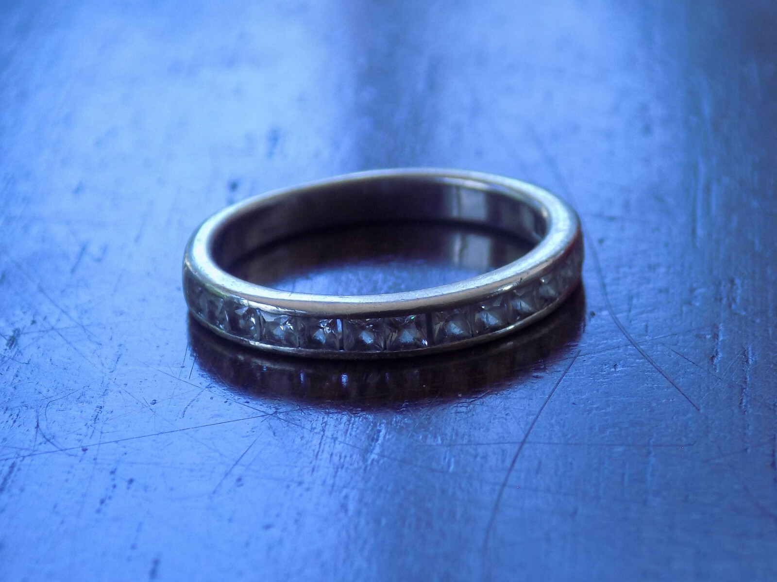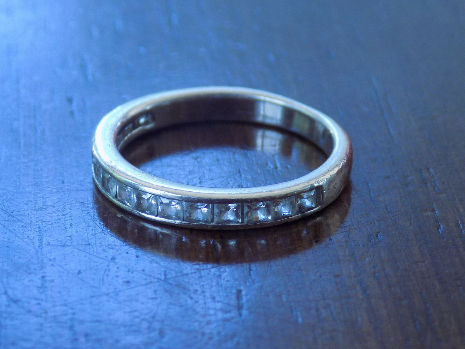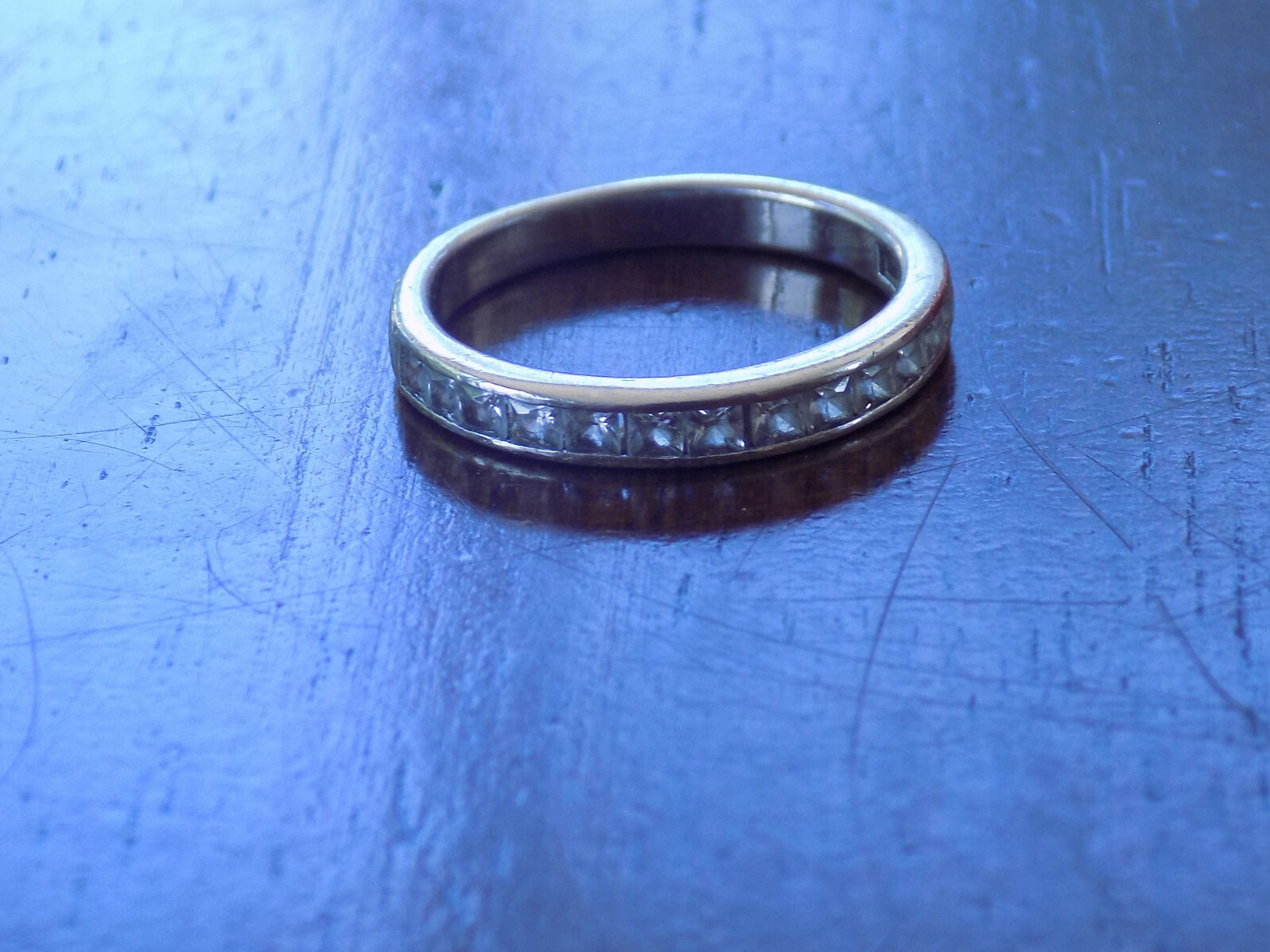 как выглядит Size 7, silver tone eternity band with clear cz around front center 194 фото