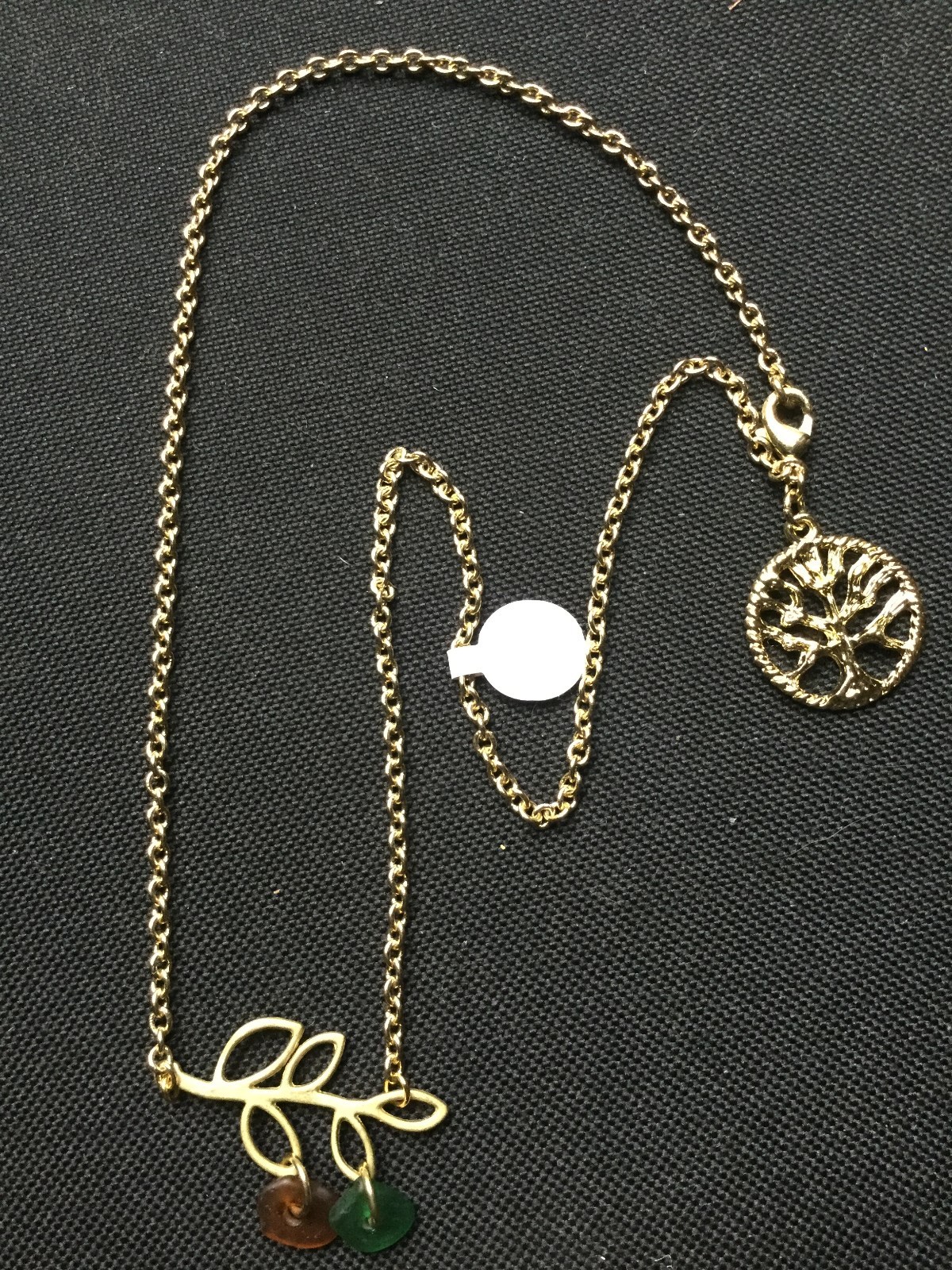 как выглядит NEW HANDCRAFTED BEACH SEA GLASS NECKLACE PENDANT-METAL BRANCH W/LEAVES фото