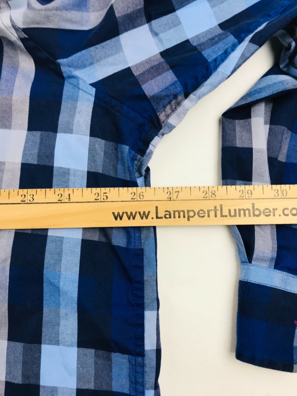 как выглядит Jasso Elba Shirt Mens Size XXL 18-18.5 Blue White Plaid Button Down фото