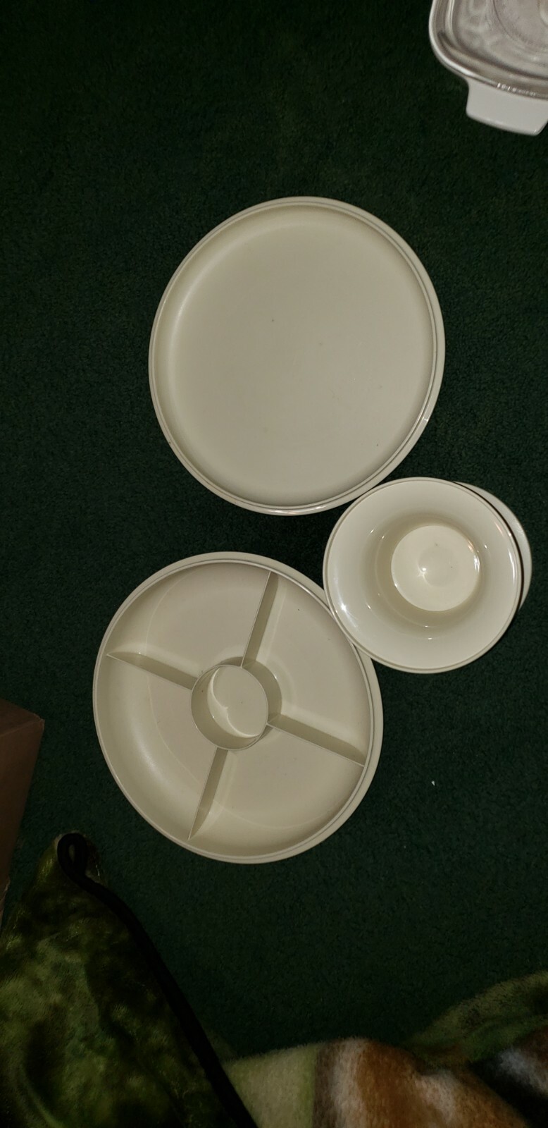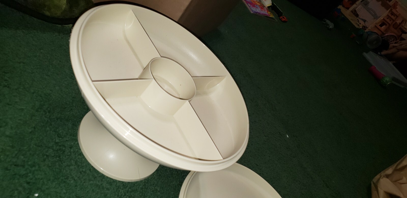 как выглядит VINTAGE TUPPERWARE PEDESTAL Serve-It-All SET 1531 1532 1533 ALMOND фото