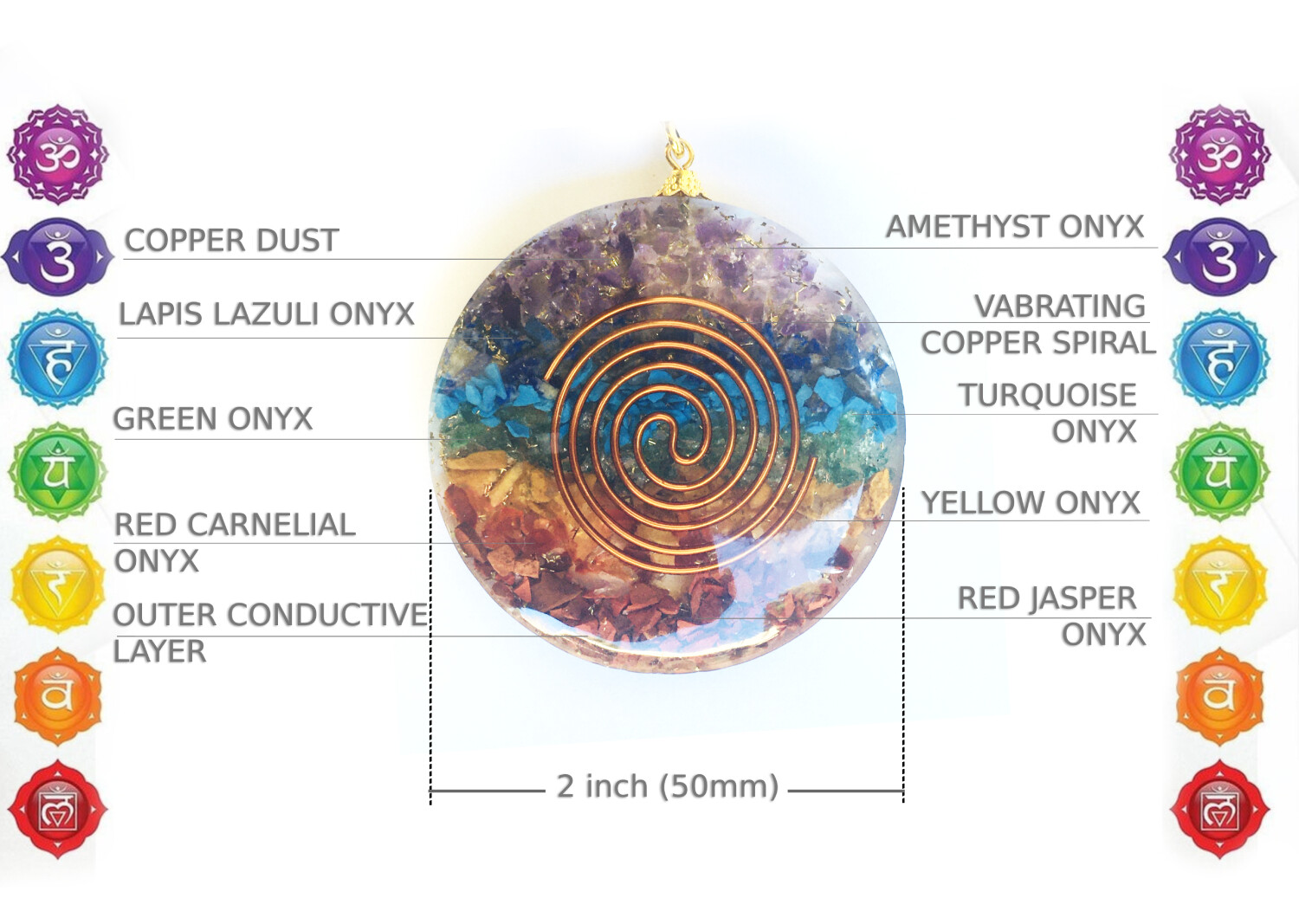 Seven Chakra Orgone Pendant - Necklace Energy Healing Crystals, Emf Protection