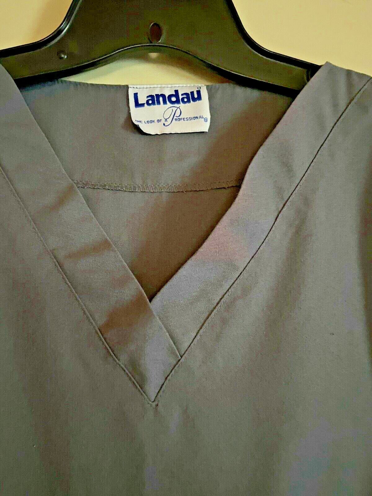 как выглядит Landau Womens Dark Gray Scrub Top V-Neck Size XXS Pre-Owned фото